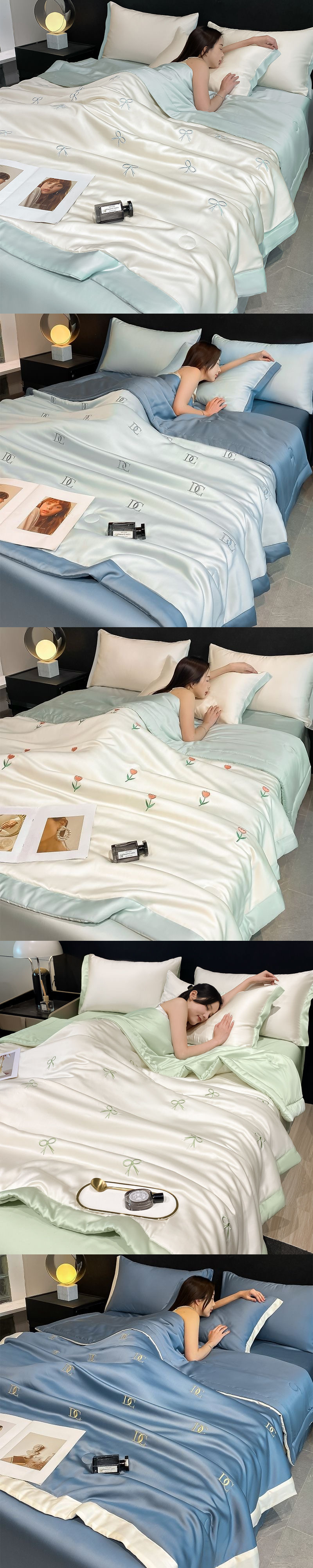 여름 빛 럭셔리 아이스 실크 여름 퀼트 4 피스 세트 세척 실크 자수 여름 시원한 이불 에어컨 이불 기계 세탁기 얇은 이불