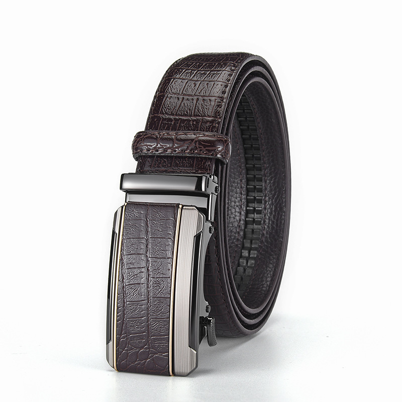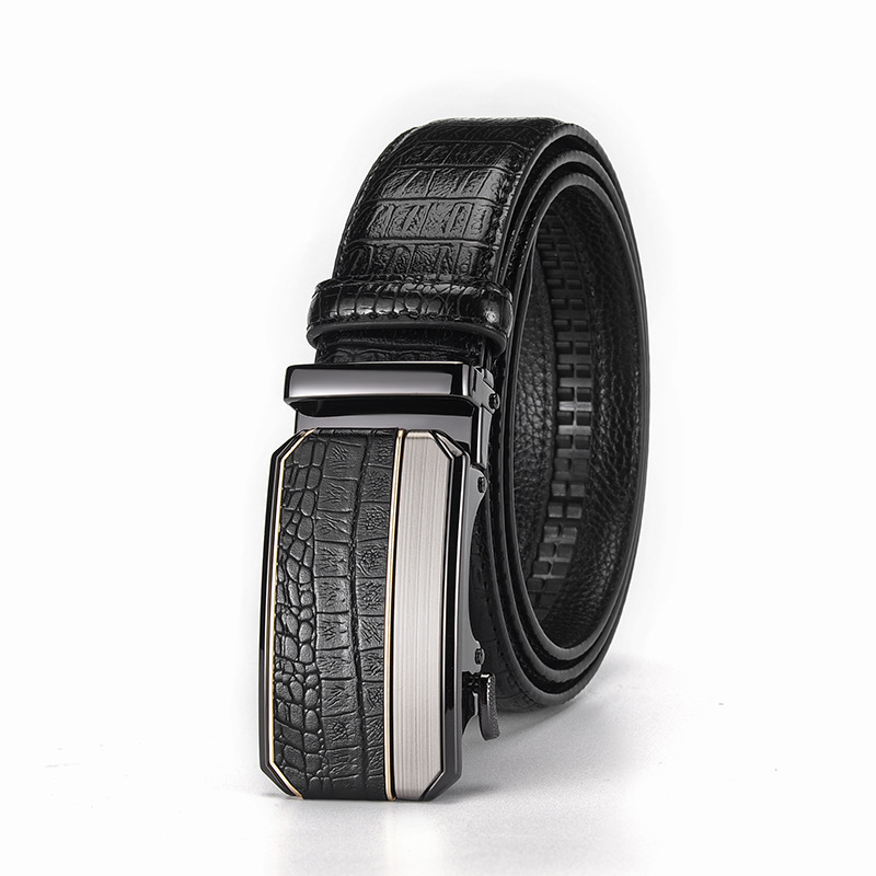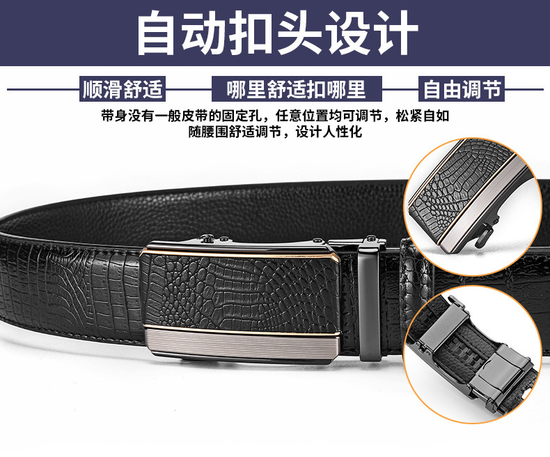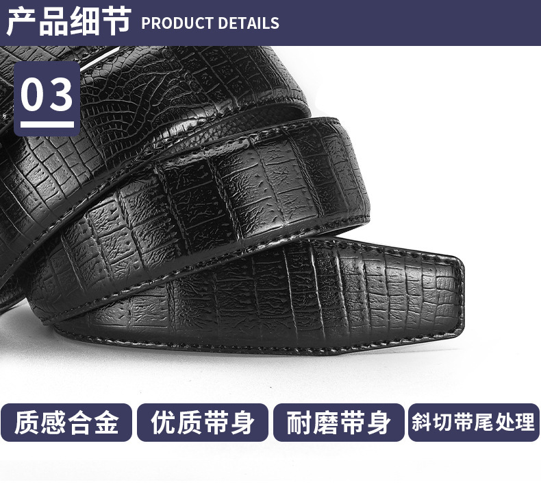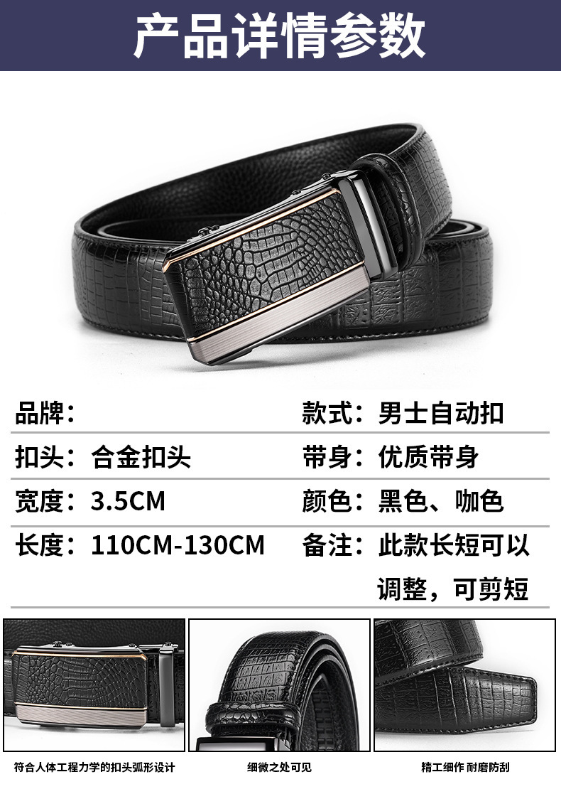 남성용 가죽 악어 무늬 벨트, 남성용 고급 합금 자동 버클 벨트, 트렌디한 허리띠, 국경 간 대외 무역 전용스토어 가기