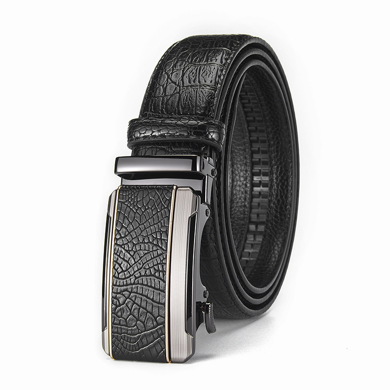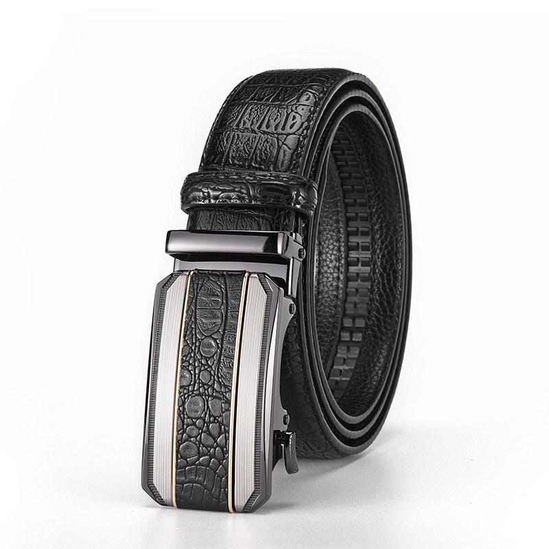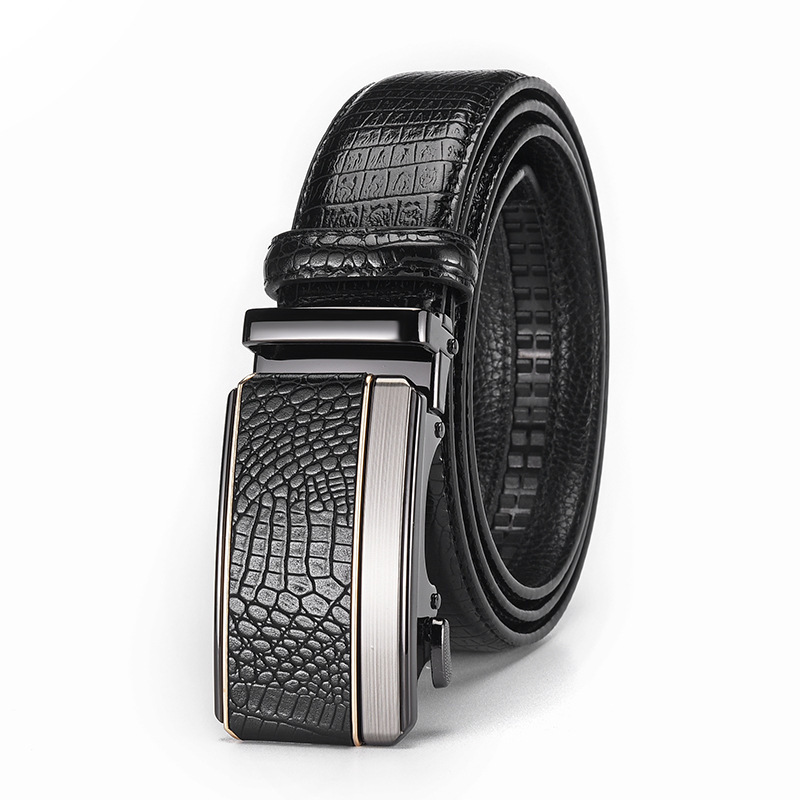 남성용 가죽 악어 무늬 벨트, 남성용 고급 합금 자동 버클 벨트, 트렌디한 허리띠, 국경 간 대외 무역 전용