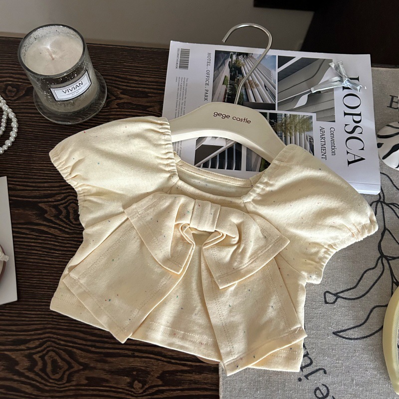 • 베이지 리본 반소매 + 랜턴 퀼로트