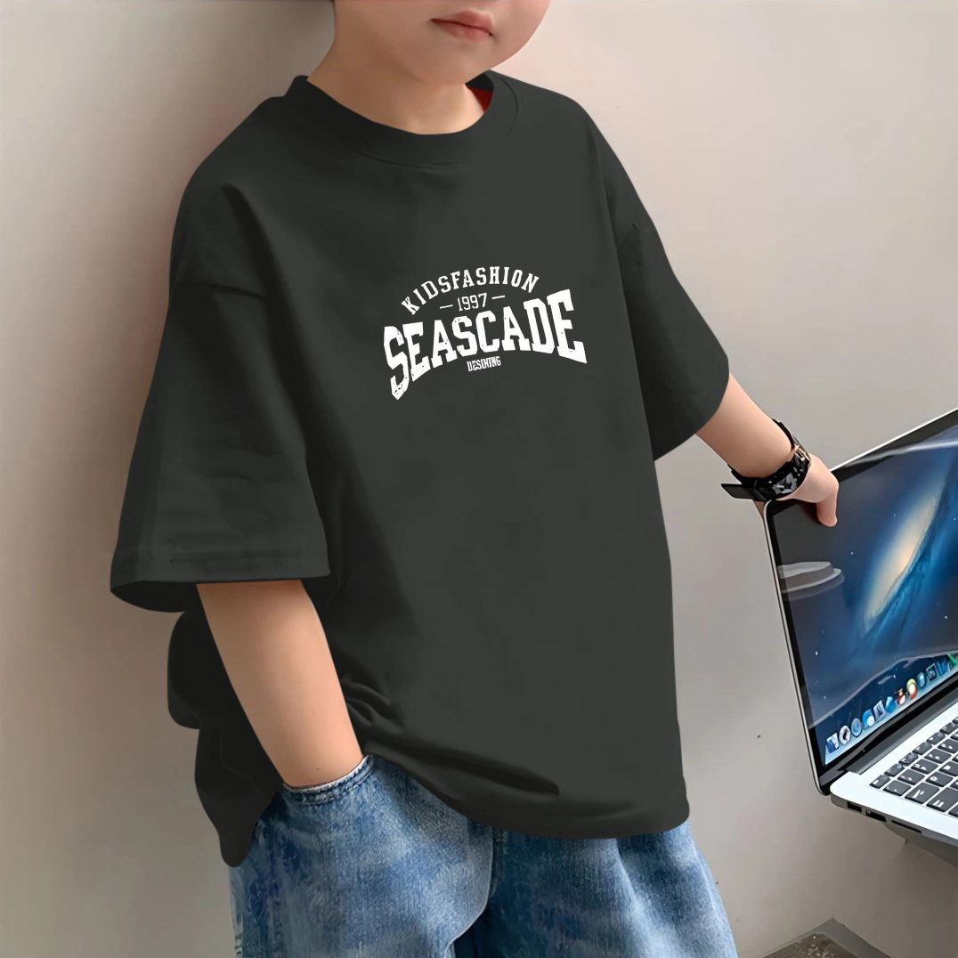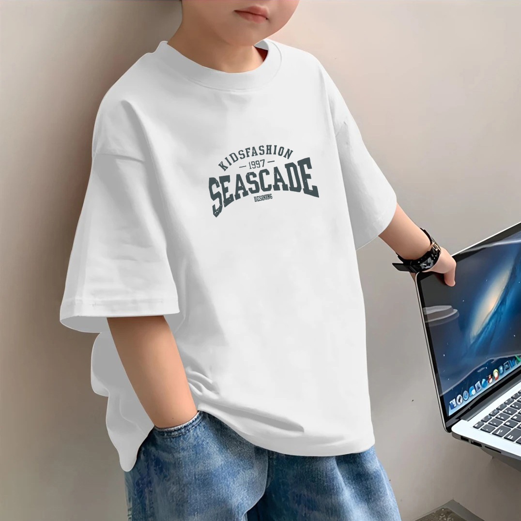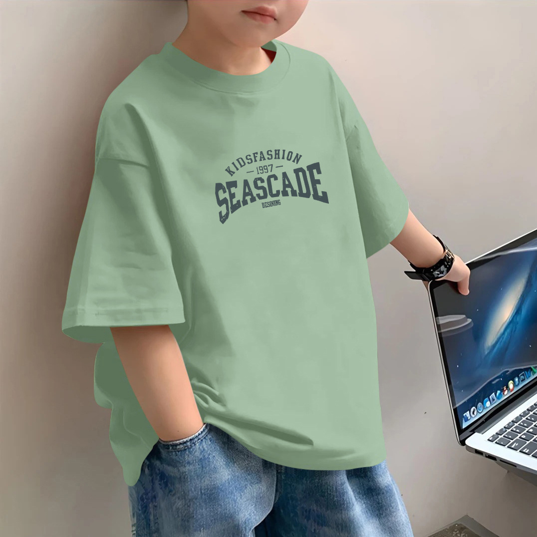 소년 반팔 2025 새로운 유행 브랜드 여름 헤비 반팔 간단한 홍콩 스타일 느슨한 어린이 티셔츠 소년 잘 생긴스토어 가기