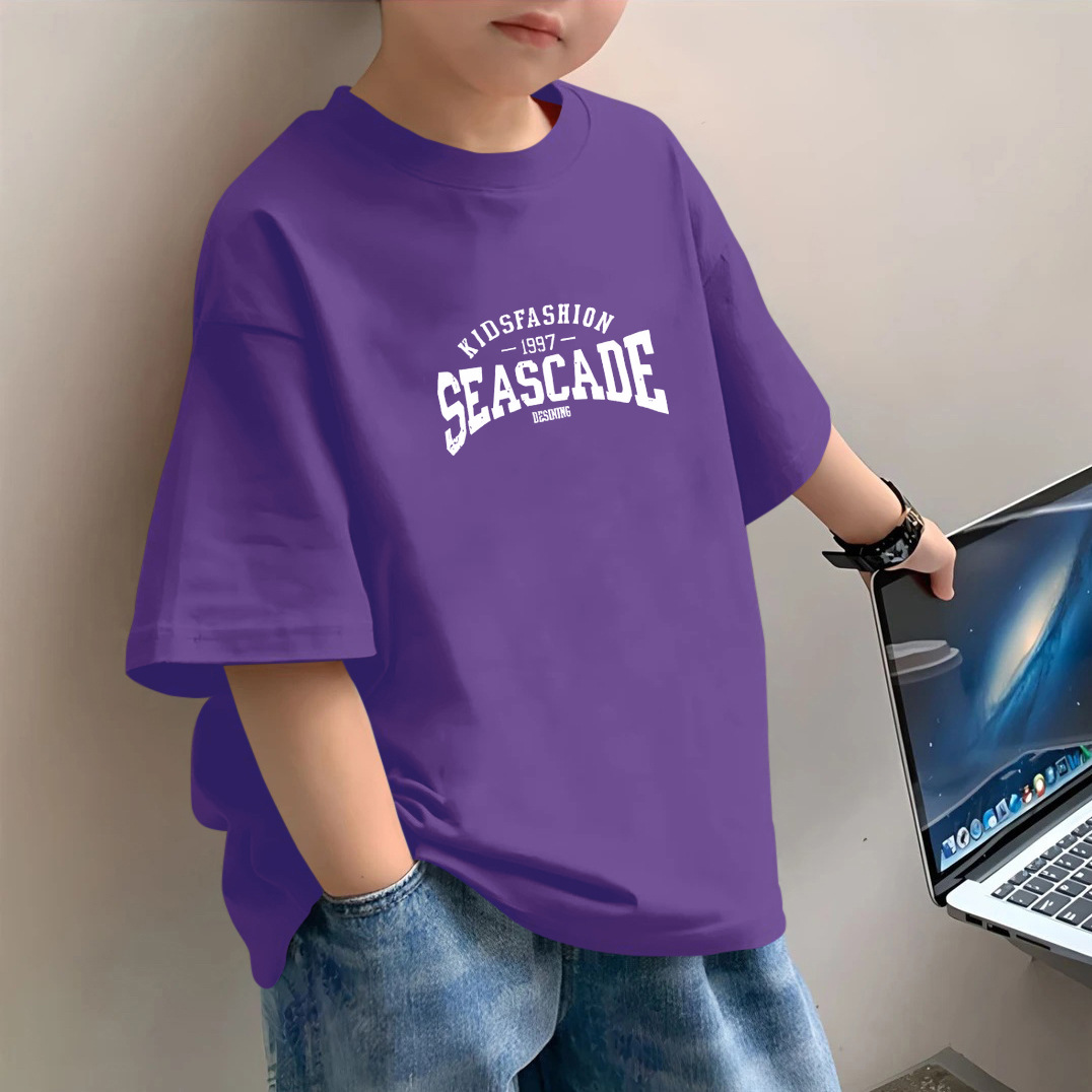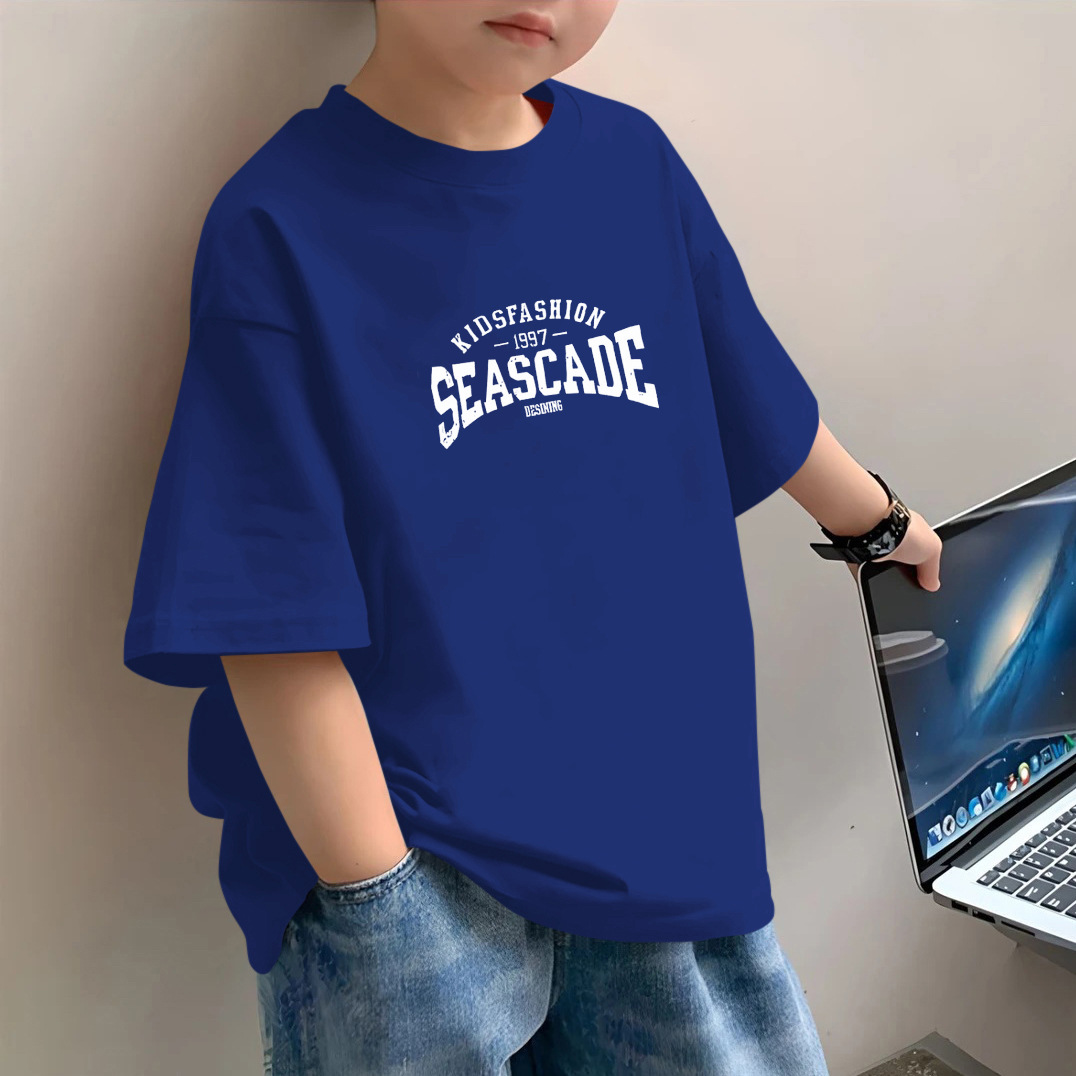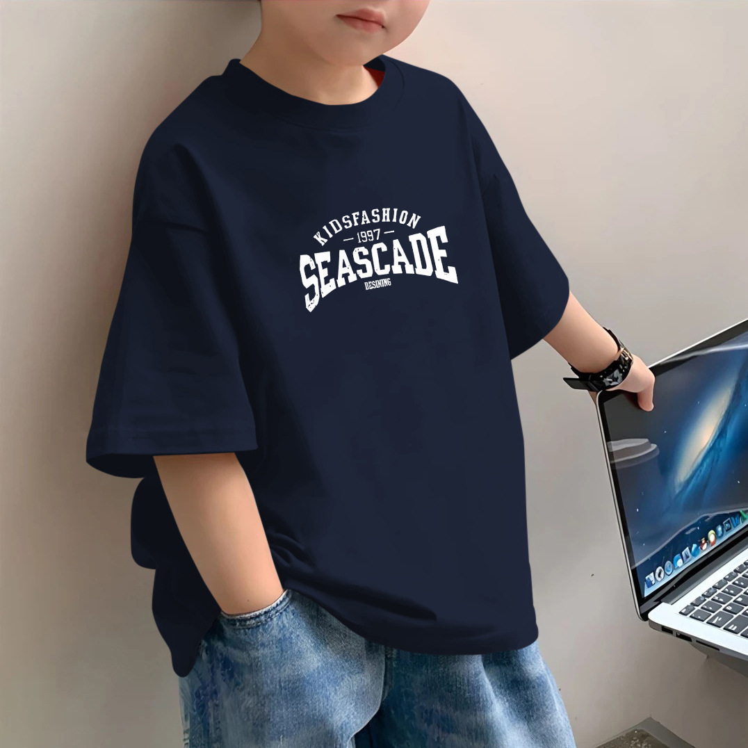 소년 반팔 2025 새로운 유행 브랜드 여름 헤비 반팔 간단한 홍콩 스타일 느슨한 어린이 티셔츠 소년 잘 생긴스토어 가기