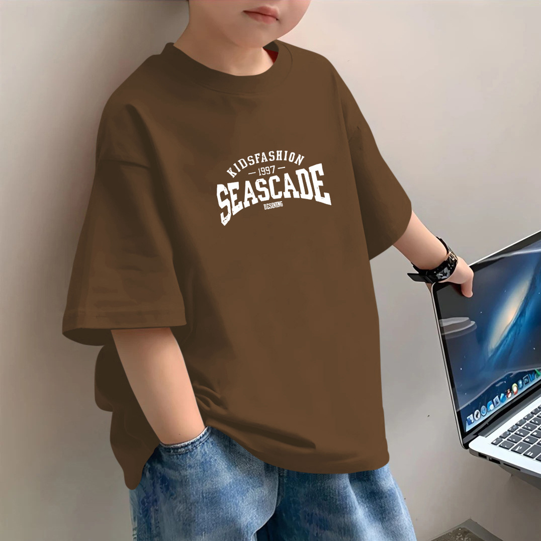 소년 반팔 2025 새로운 유행 브랜드 여름 헤비 반팔 간단한 홍콩 스타일 느슨한 어린이 티셔츠 소년 잘 생긴