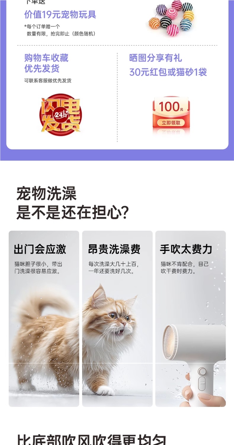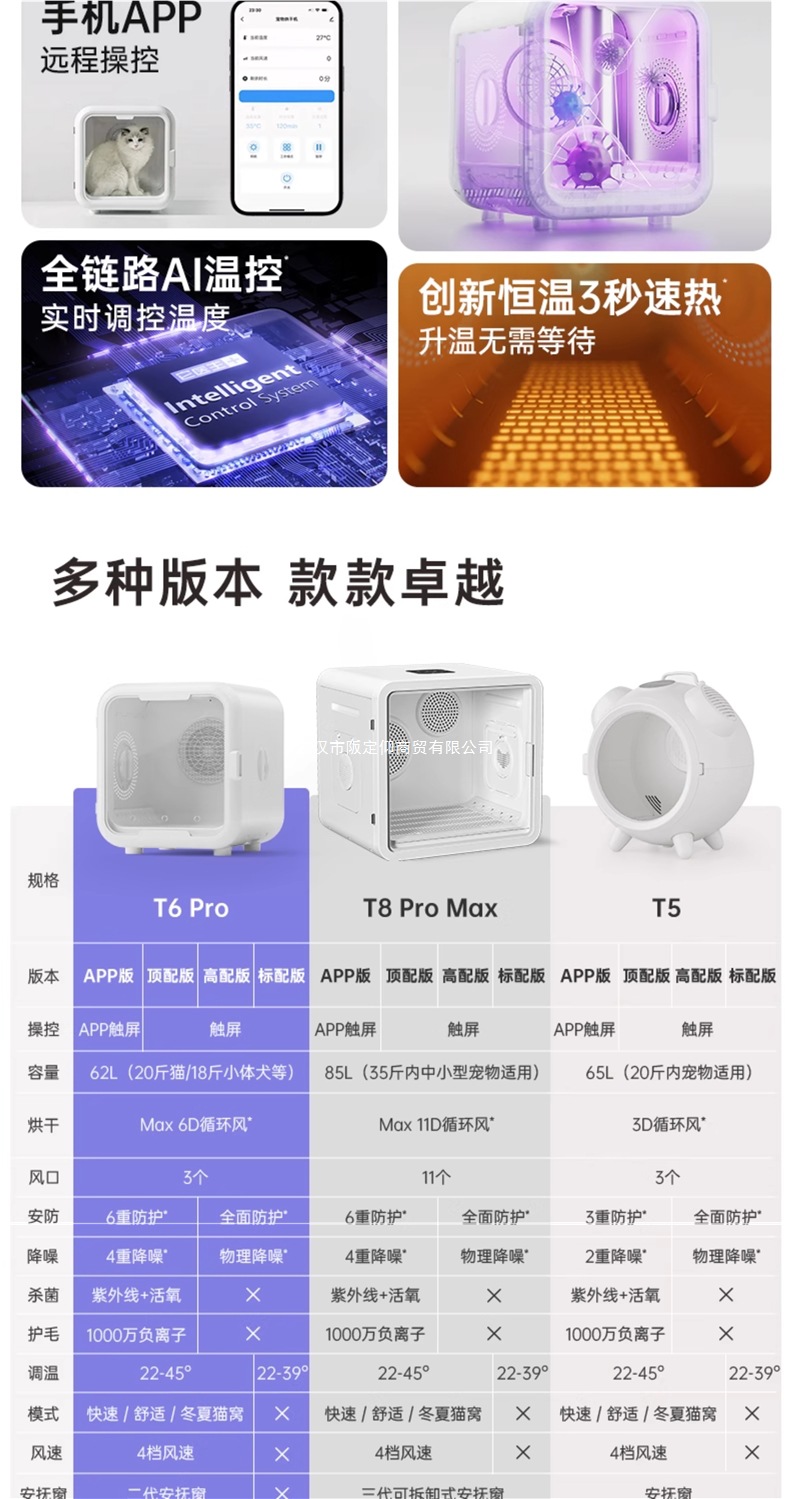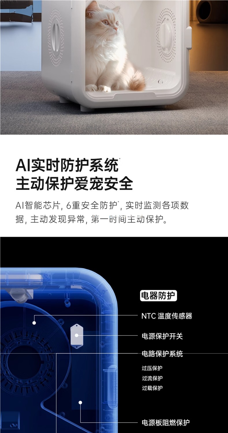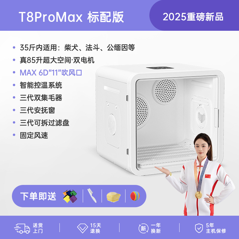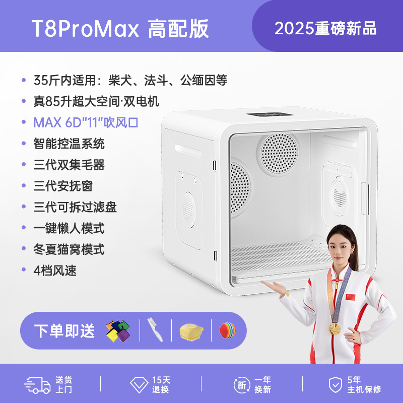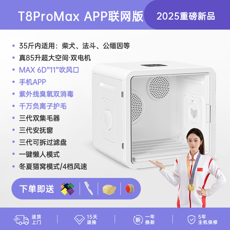 • [T8 모바일 앱 버전] 듀얼 모터 85리터: 11D 순환 공기 + 자외선/활성 산소 이중 소독 + 음이온 모발 보호 + 모드 조정 + 고양이 둥지 모드 +