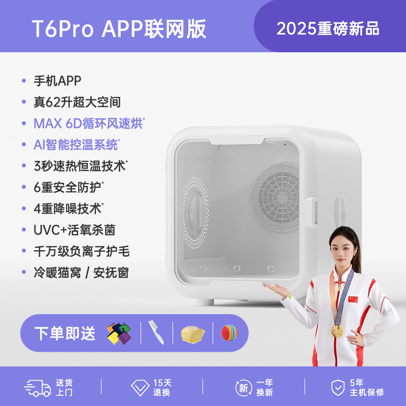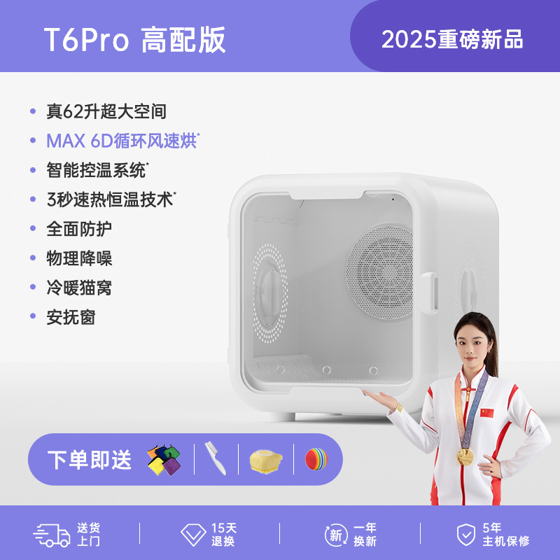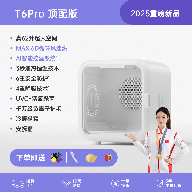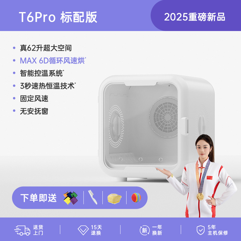 • [T6Pro 상위 버전] 62리터: 6D 순환 바람 + AI 온도 조절 + 3초 급속 가열 + 6중 보호 + 4중 소음 감소 + UVC 산소 이중 살균 +