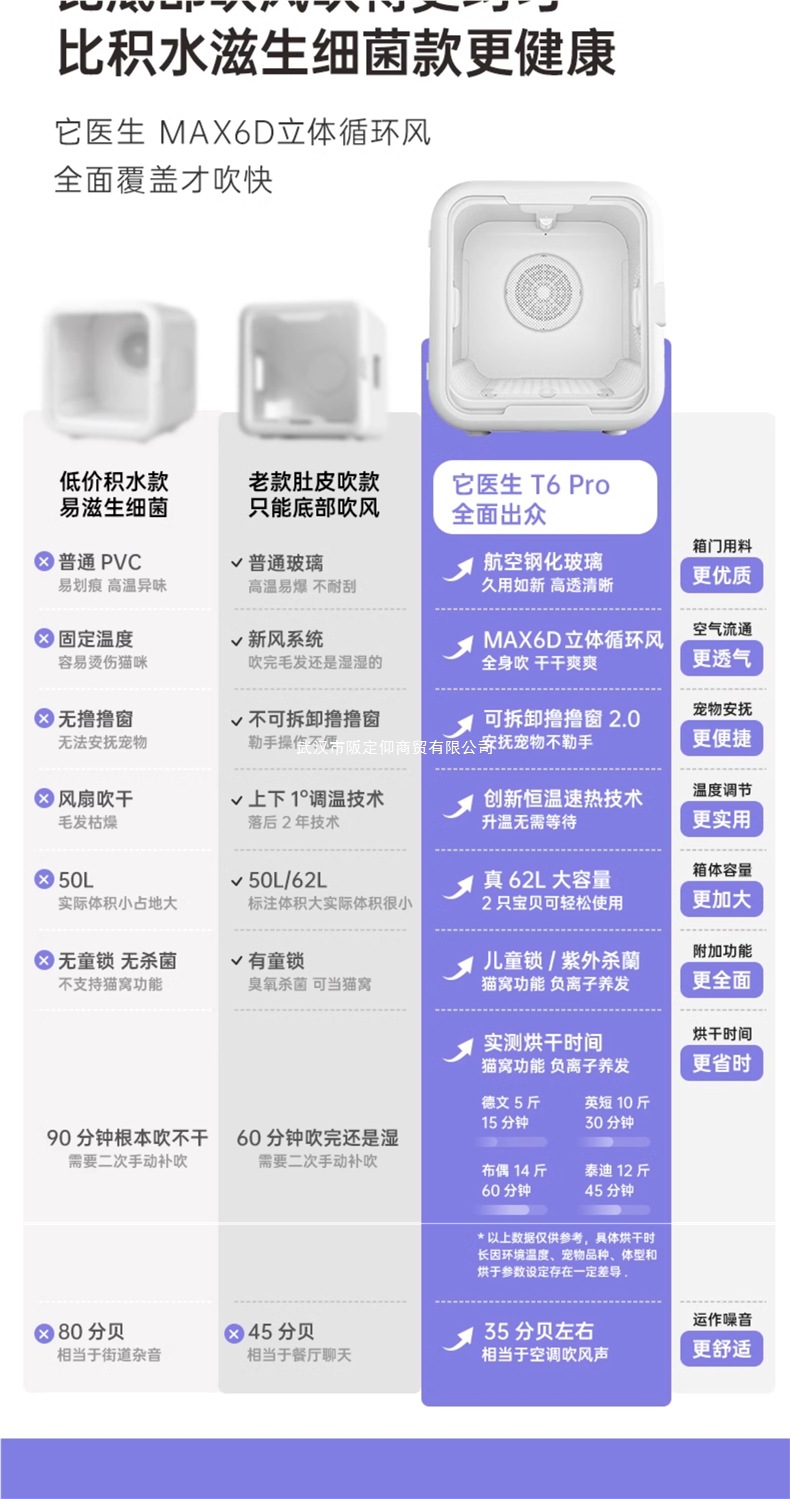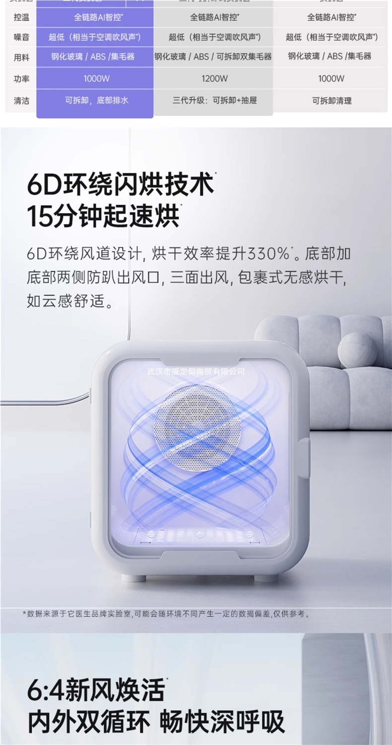 • [T6Pro 표준 버전] 62리터: 6D 3차원 순환 공기 + 6D 순환 공기 + 지능형 온도 조절 + 3초 급속 가열 + 고정 풍속 + 진정 창 없음 + 고정