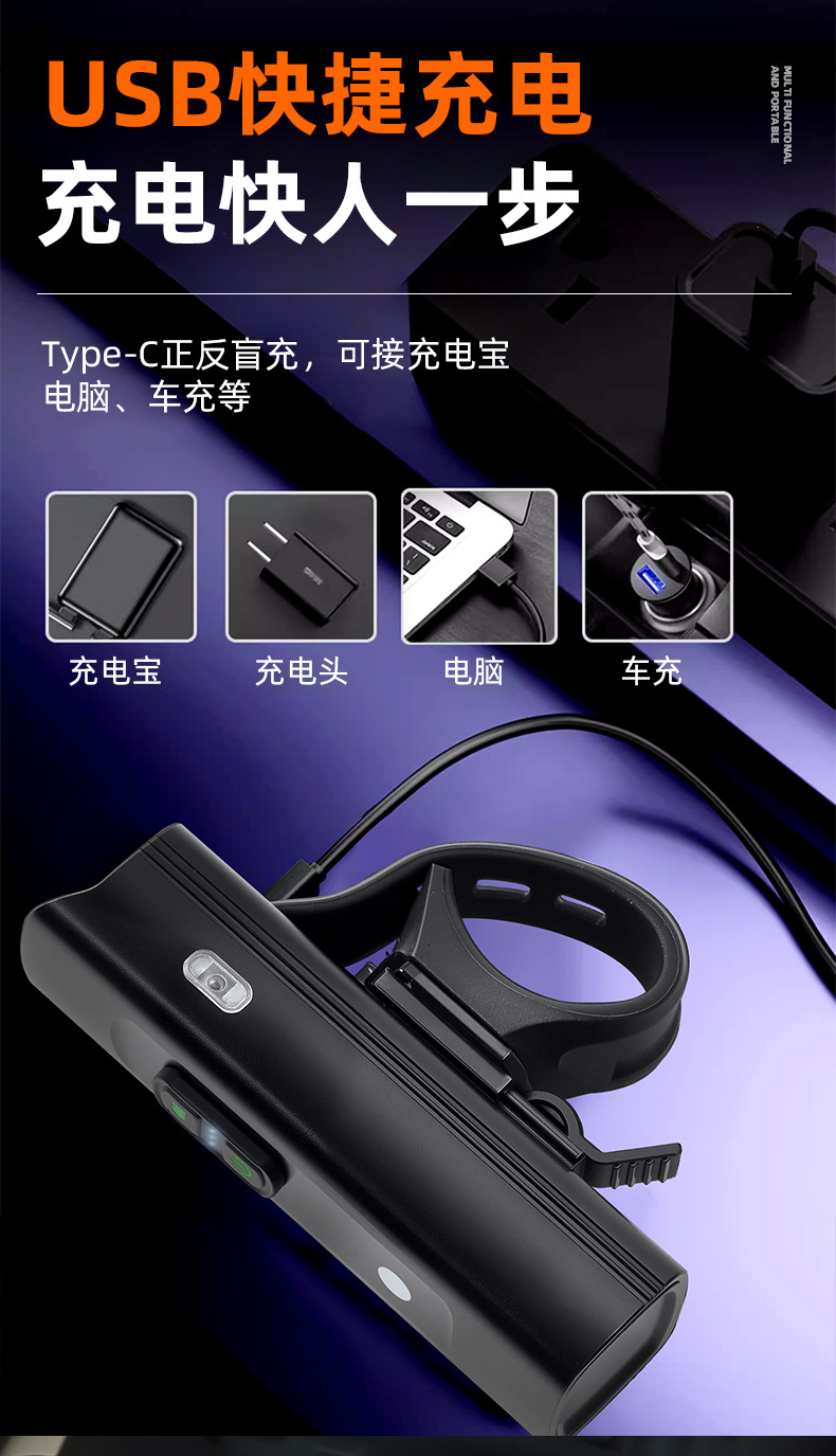 산악 자전거 고휘도 알루미늄 합금 방수 도로 자전거 야외 야간 라이딩 TYPE-C 충전식 사이클링 장비
