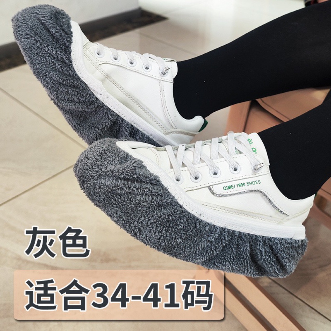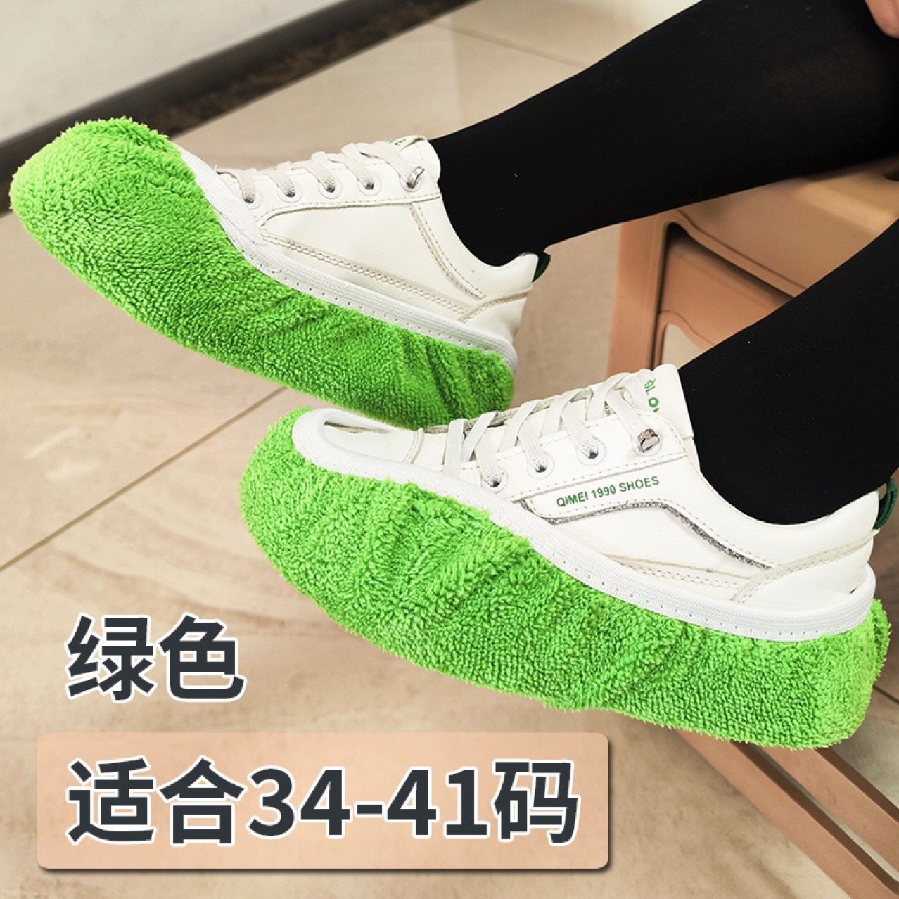 바닥 청소용 슬리퍼, 탈부착 및 세탁 가능, 두꺼운 재질, 반복 사용 가능, 성인용 실내용, 게으른 사람들을 위한 신발 커버 양말, 걸레, 산호 벨벳스토어 가기