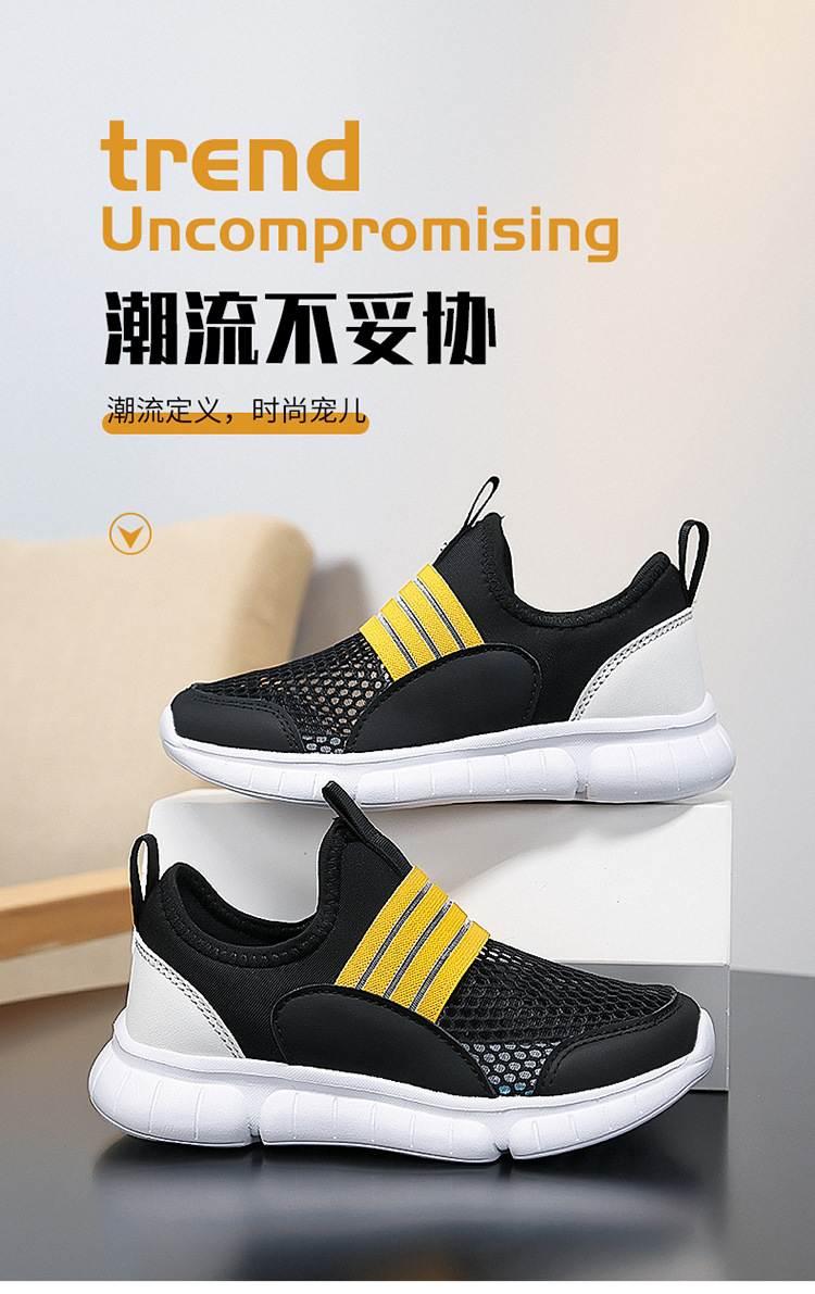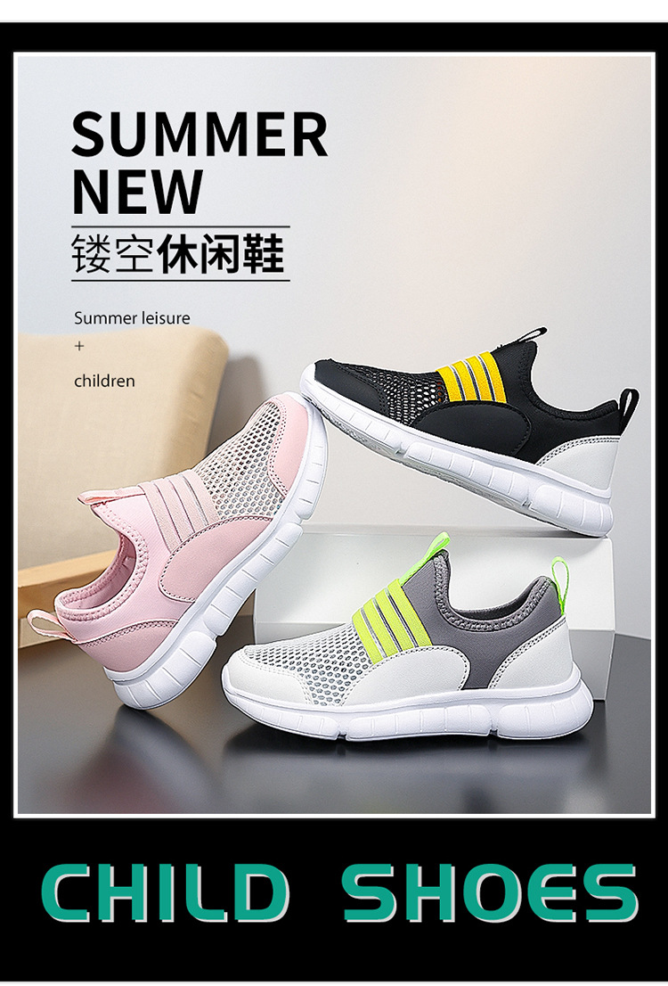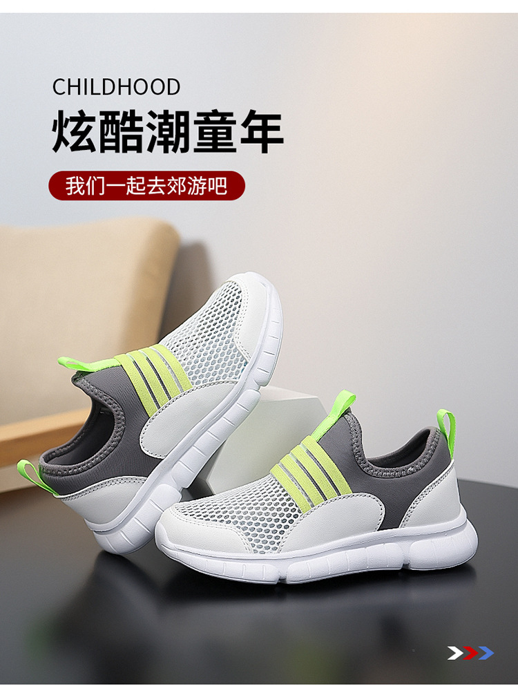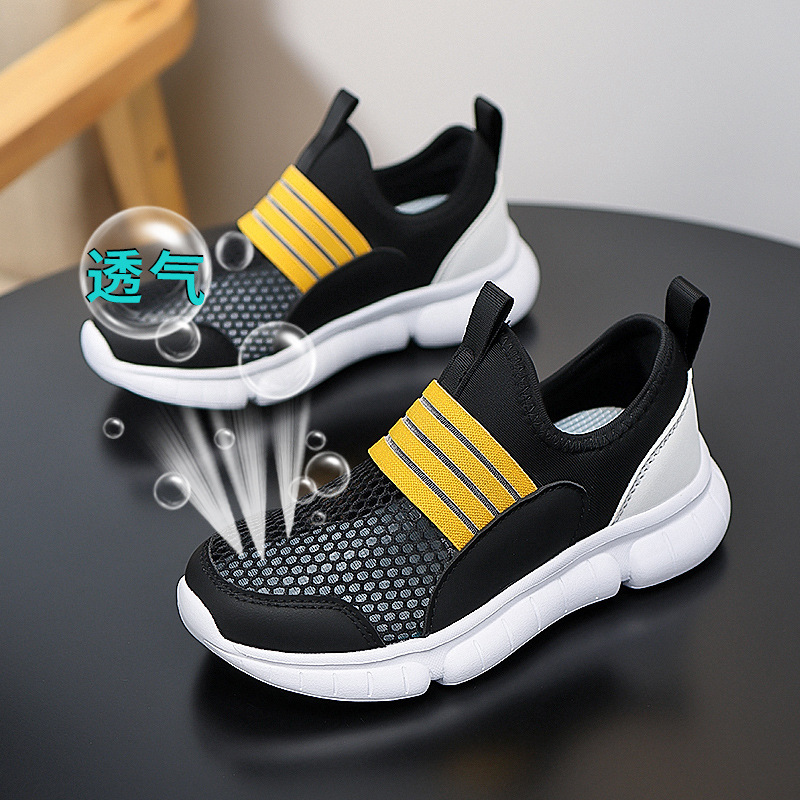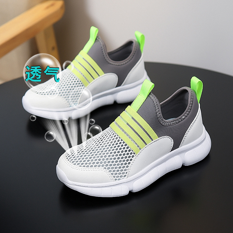 어린이 메쉬 신발 여름 새 소년 싱글 메쉬 운동화 중형 및 대형 어린이 슬립 온 중공 캐주얼 신발 게으른 어린이 신발