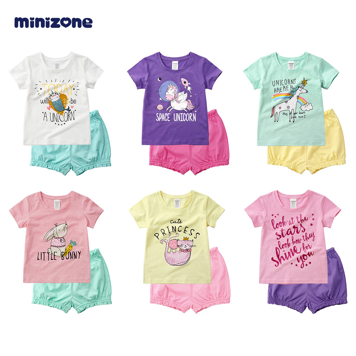 미니 존 어린이 여름 세트 반팔 아동복 여성 여름 세트 소년 티셔츠 여름 아기 여름 얇은 옷스토어 가기