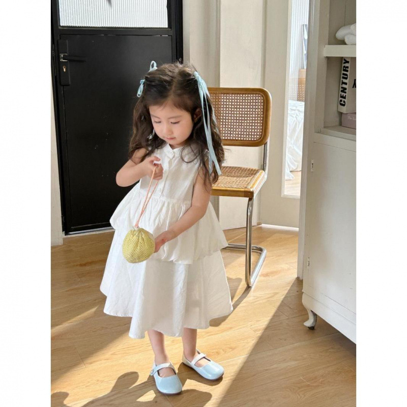 여아, 중소형 여아를 위한 한국 여름 신상품, 달콤하고 귀여운 드레스, 여아 셔츠, 면 소재, 작은 신선한 스커트, 트렌디함