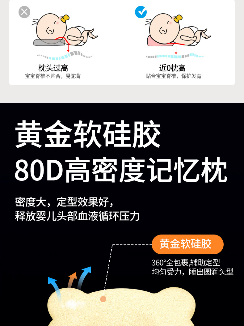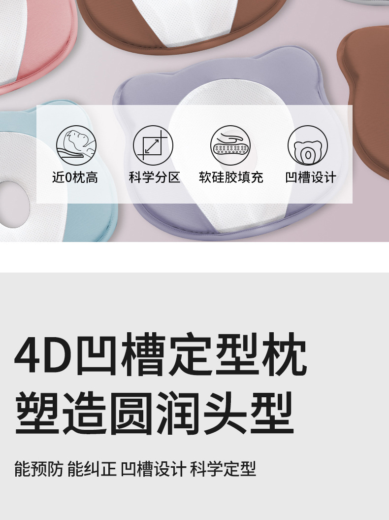 Domibaby 아기 성형 베개 신생아 교정 머리 모양 교정 0-1 세 아기 편심 방지 실리콘 베개스토어 가기