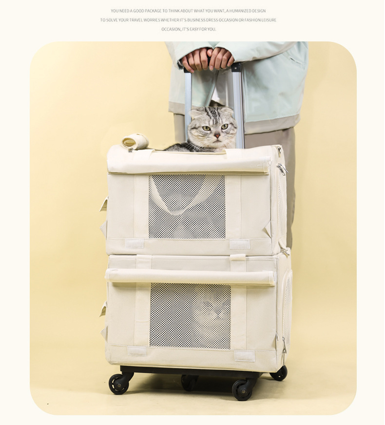 애완동물 트롤리 케이스, 2층 고양이 가방 트롤리 케이스, 대용량 휴대용 애완동물 용품, 2층 대형 고양이 가방스토어 가기