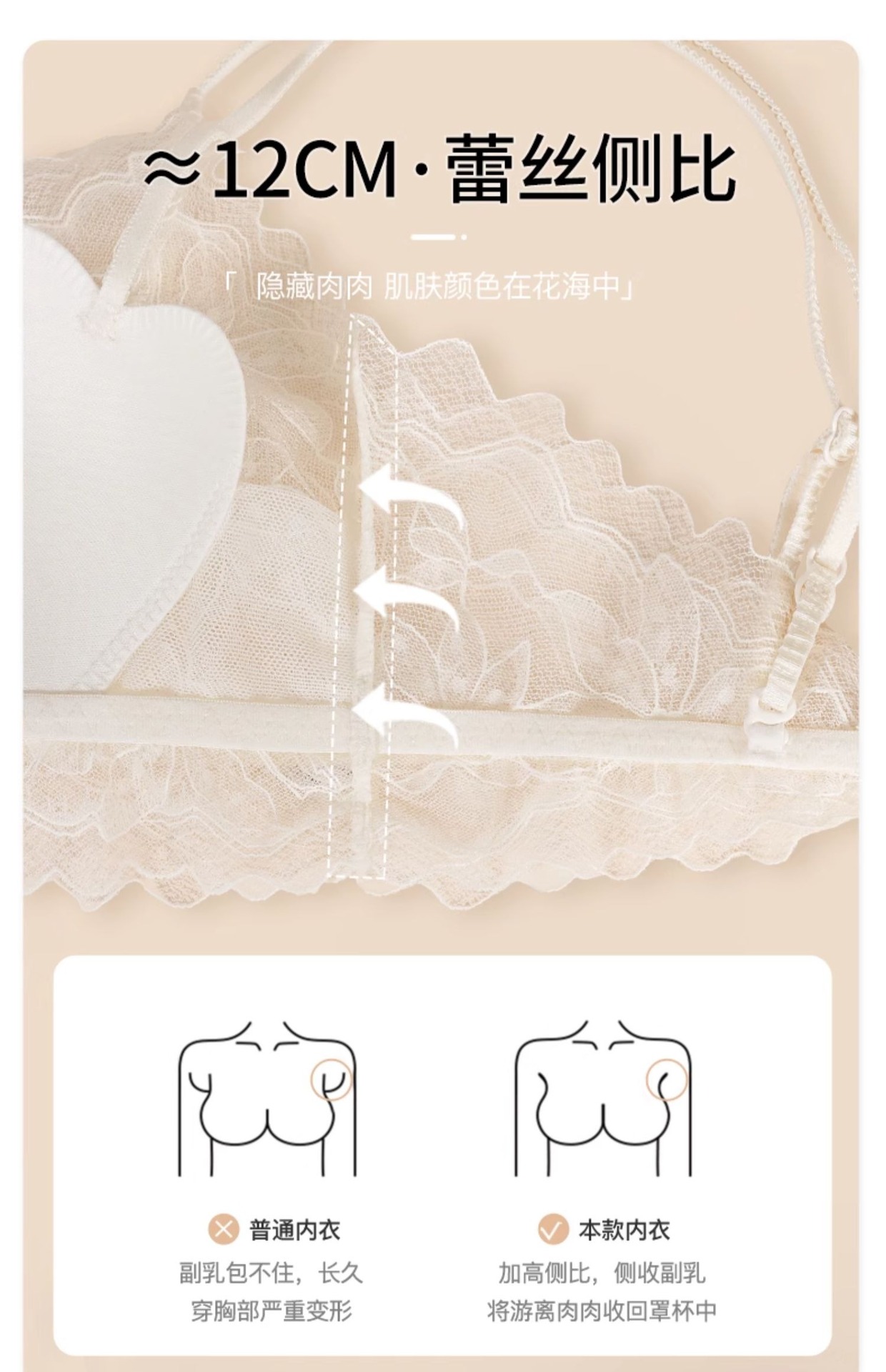 여름 여성용 크로스보더 프렌치 브라, 얇고 큰 가슴, 작은 레이스 섹시 브라, 스파게티 스트랩, 아름다운 등, 새로운 스타일의 브라스토어 가기