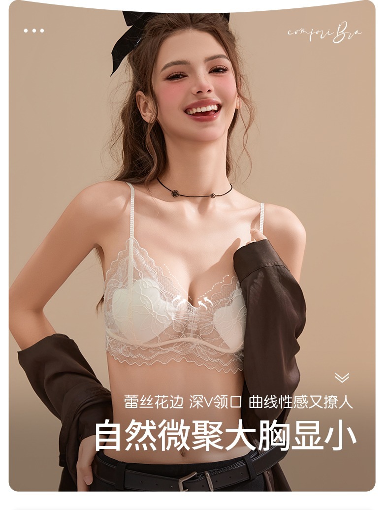 여름 여성용 크로스보더 프렌치 브라, 얇고 큰 가슴, 작은 레이스 섹시 브라, 스파게티 스트랩, 아름다운 등, 새로운 스타일의 브라