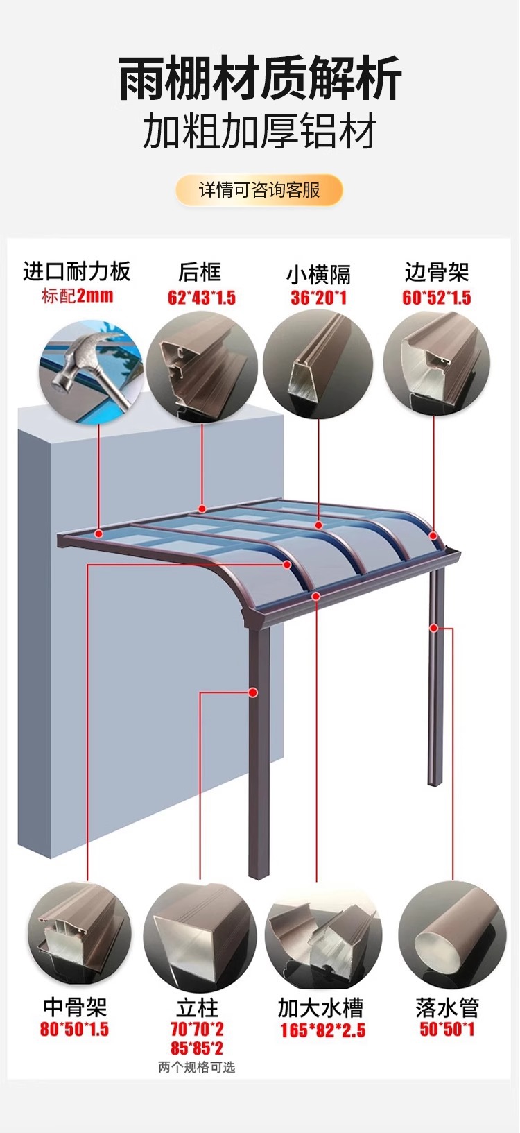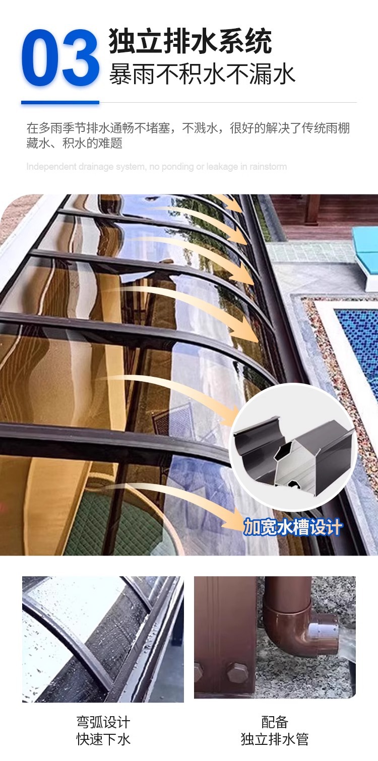 공장 알루미늄 합금 캐노피 야외 방비 안뜰 처마 태양 창고 빌라 발코니 홈 창 비 그늘