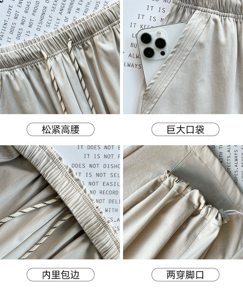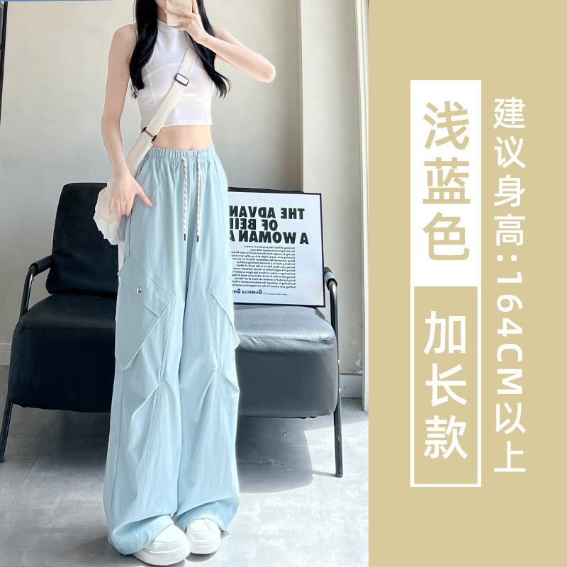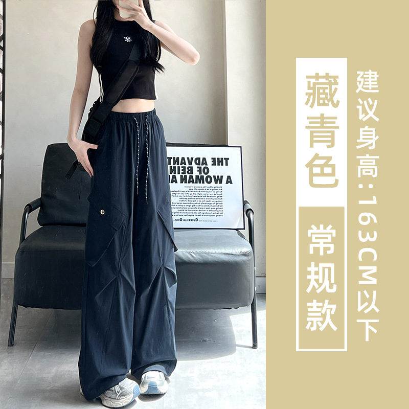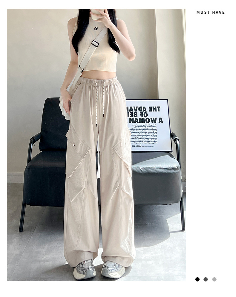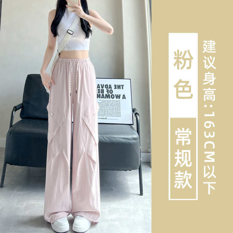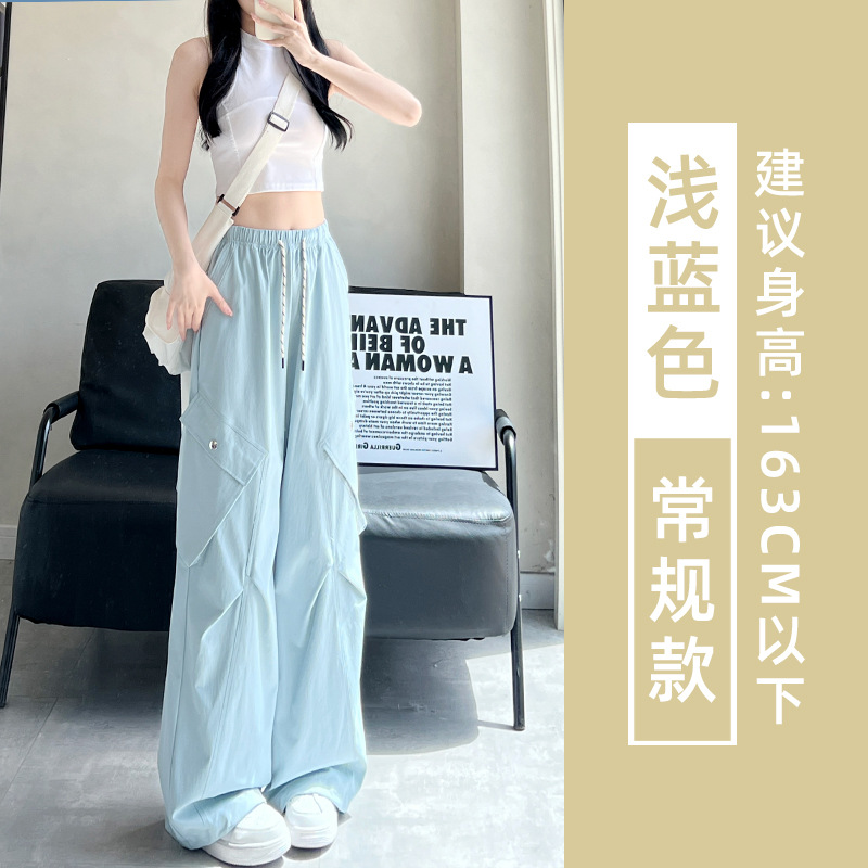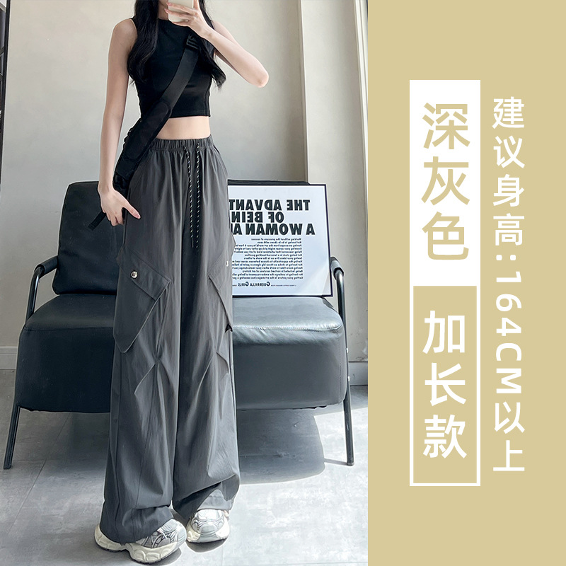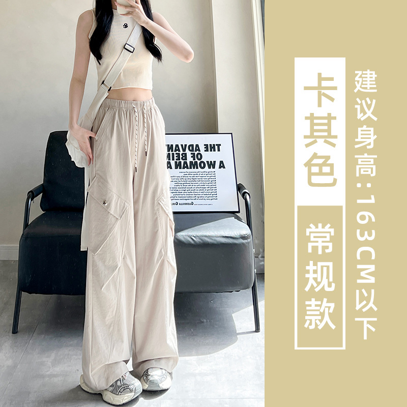 노란색 대형 포켓 오버홀 여성 여름 새로운 높은 허리 슬리밍 느슨한 미국 빠른 건조 스포츠 캐주얼 와이드 레그 바지