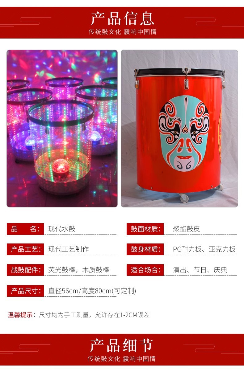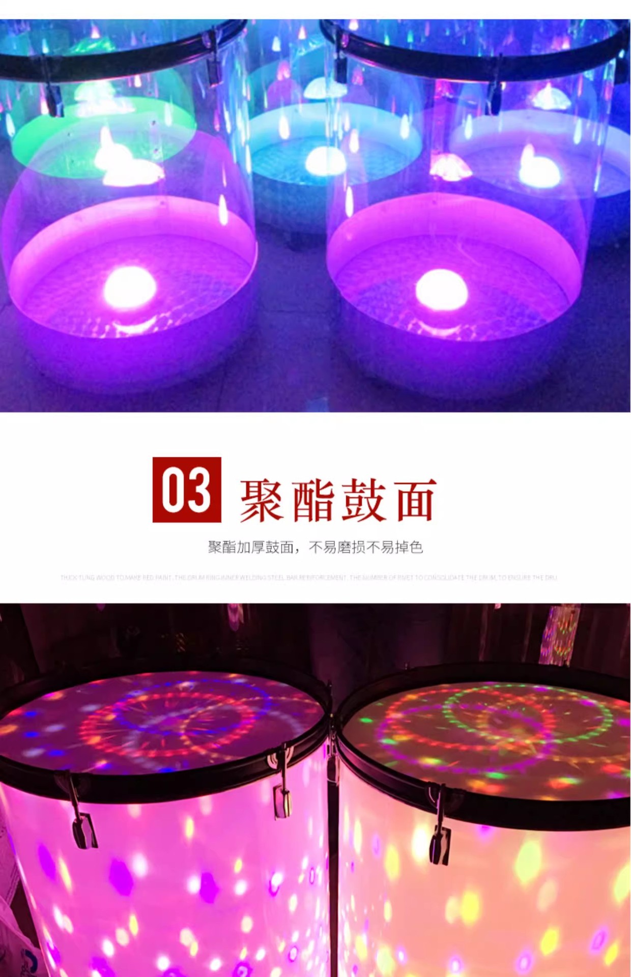 • 투명하고 다채로운 이중 조명 물 드럼