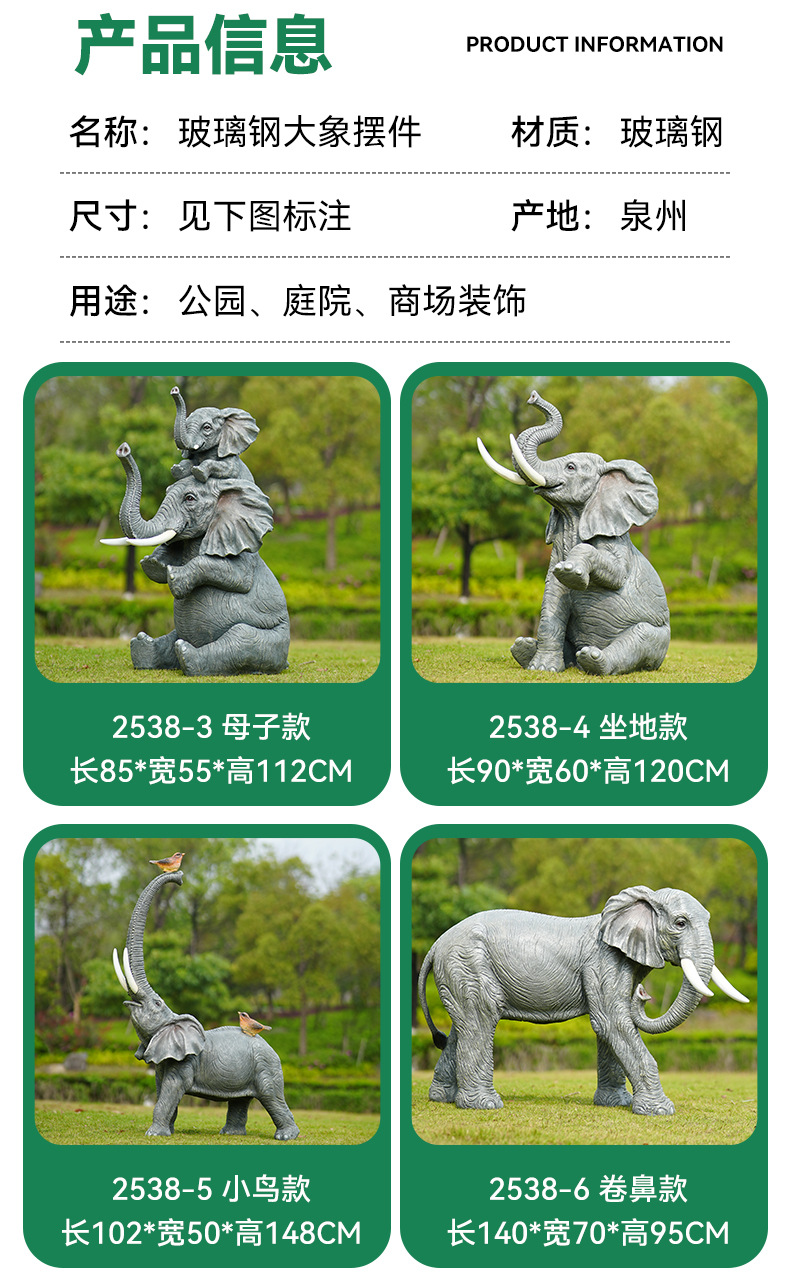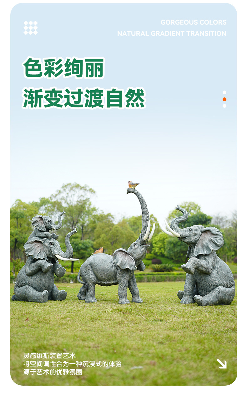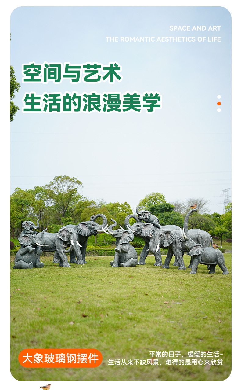 야외 대형 동물 모델 장식 장식품 시뮬레이션 코끼리 유리 섬유 강화 플라스틱 조각 표본 공원 숲 초원 풍경