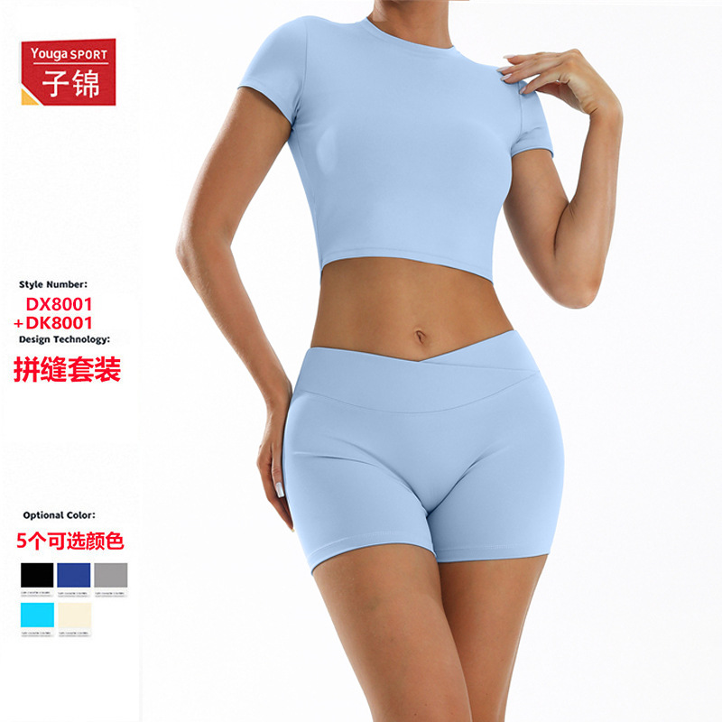 가슴 패드가 있는 요가복, 런닝 누드 타이트 요가복, 피트니스복, 여름 스포츠 반팔복 8001