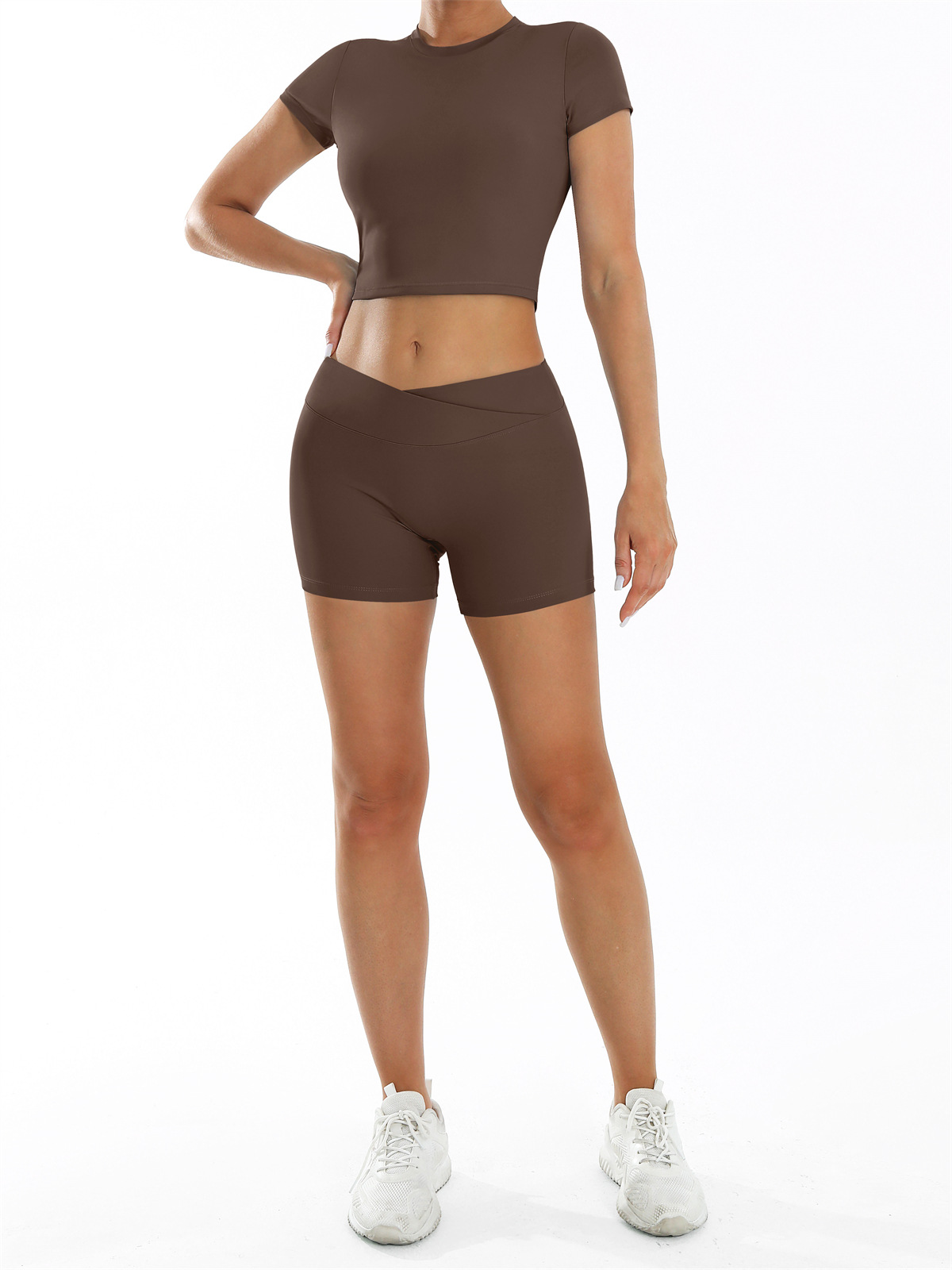 가슴 패드가 있는 요가복, 런닝 누드 타이트 요가복, 피트니스복, 여름 스포츠 반팔복 8001스토어 가기