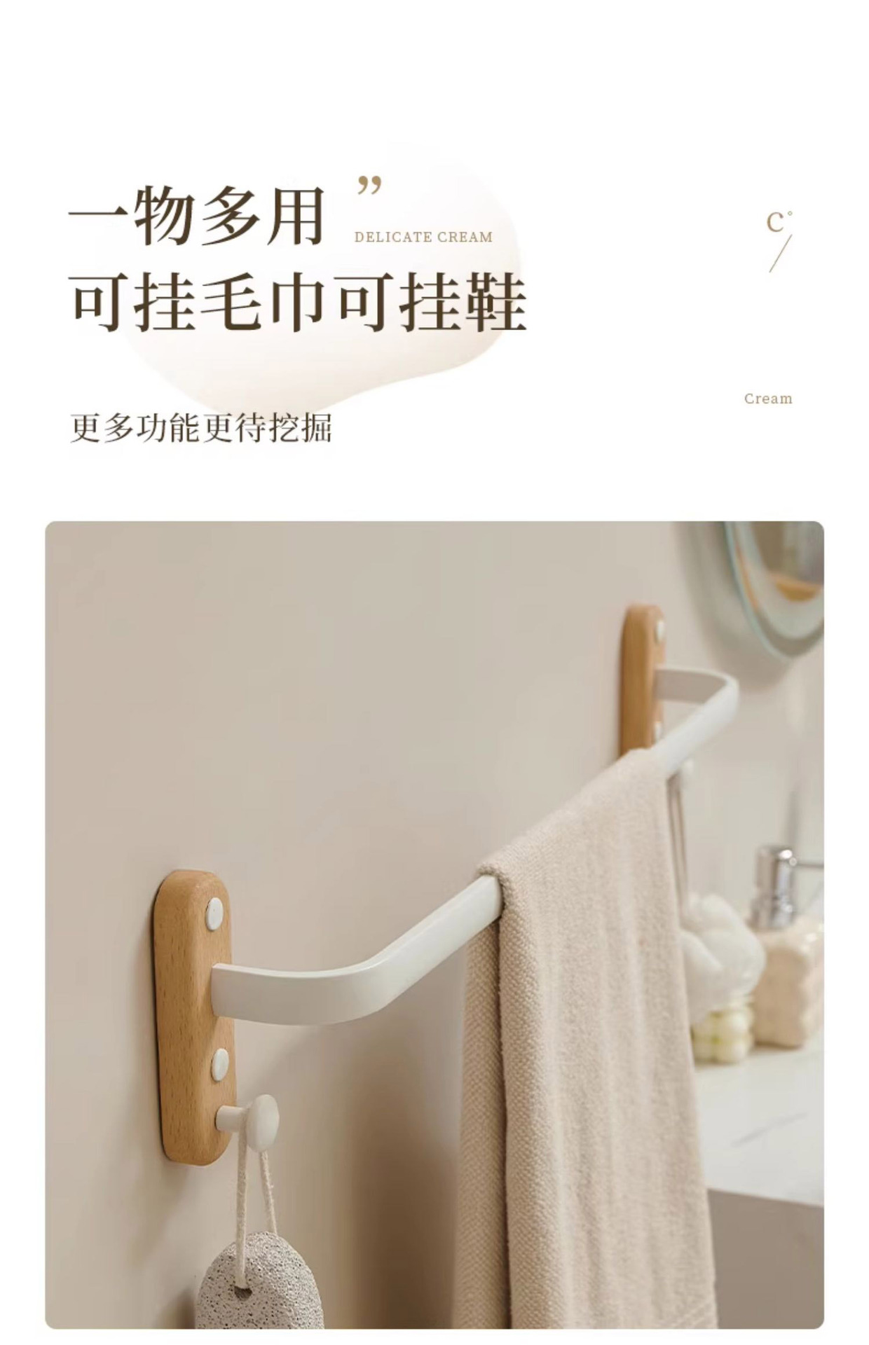 너도밤나무 수건걸이, 펀치 없는 벽걸이형 욕실 슬리퍼걸이, 욕실 다기능 수납걸이