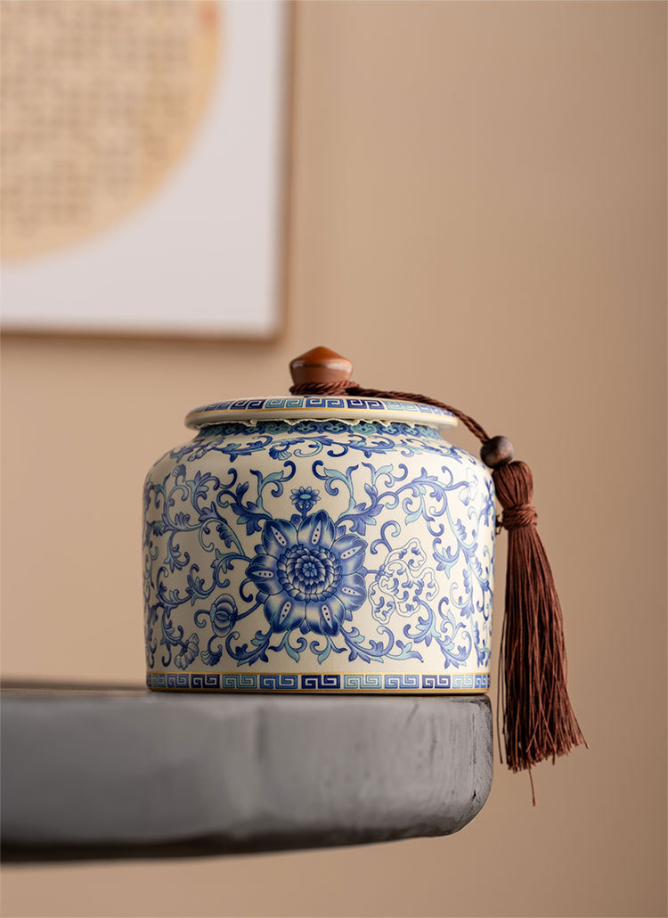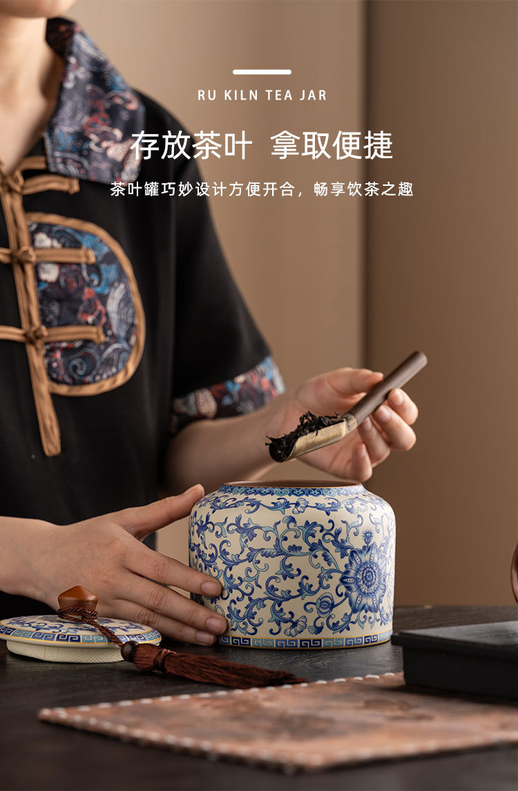 파란색과 흰색 루 가마 세라믹 차 항아리 부티크 고급 녹차 백차 Pu'er 차 수분 방지 항아리 중국 밀봉 보관 항아리