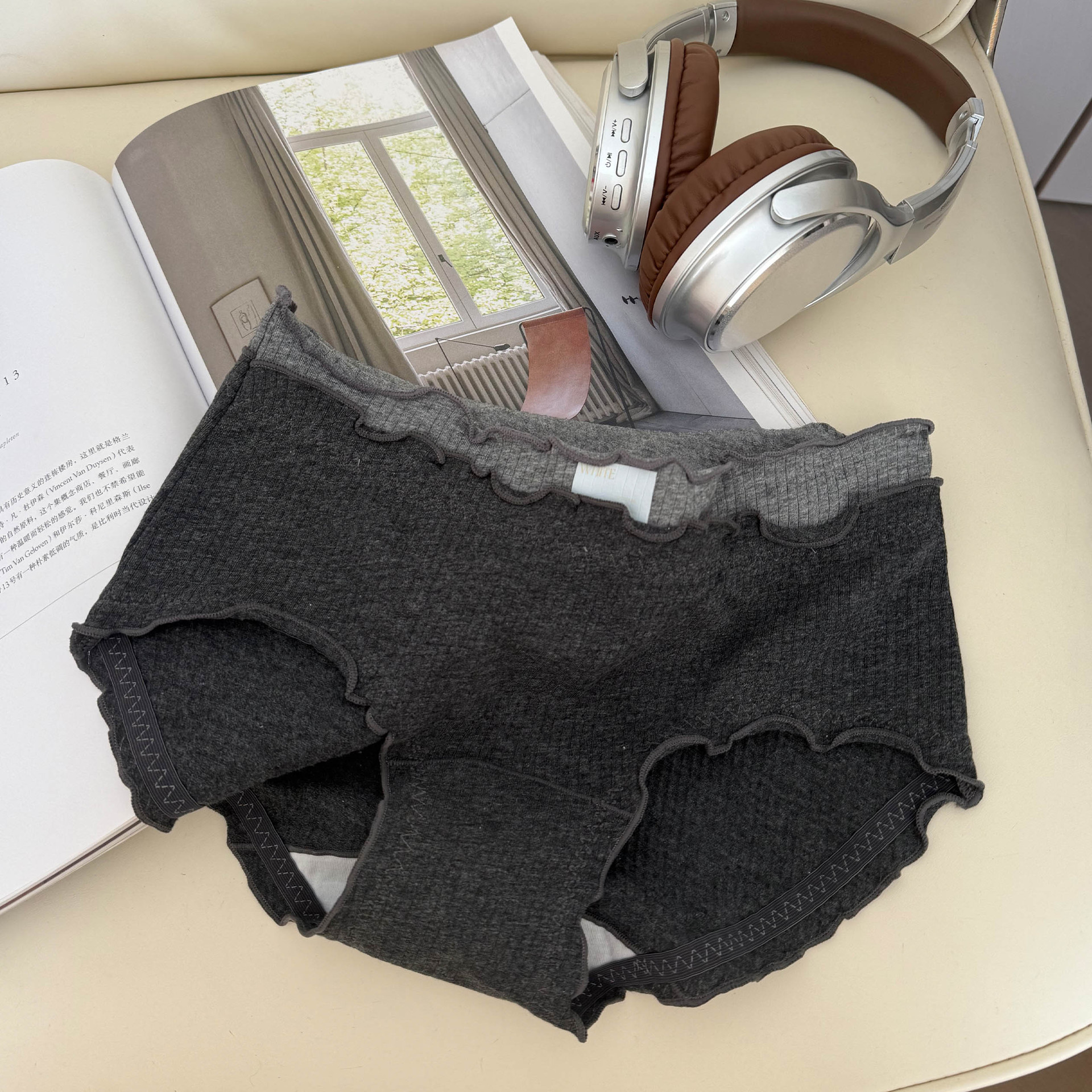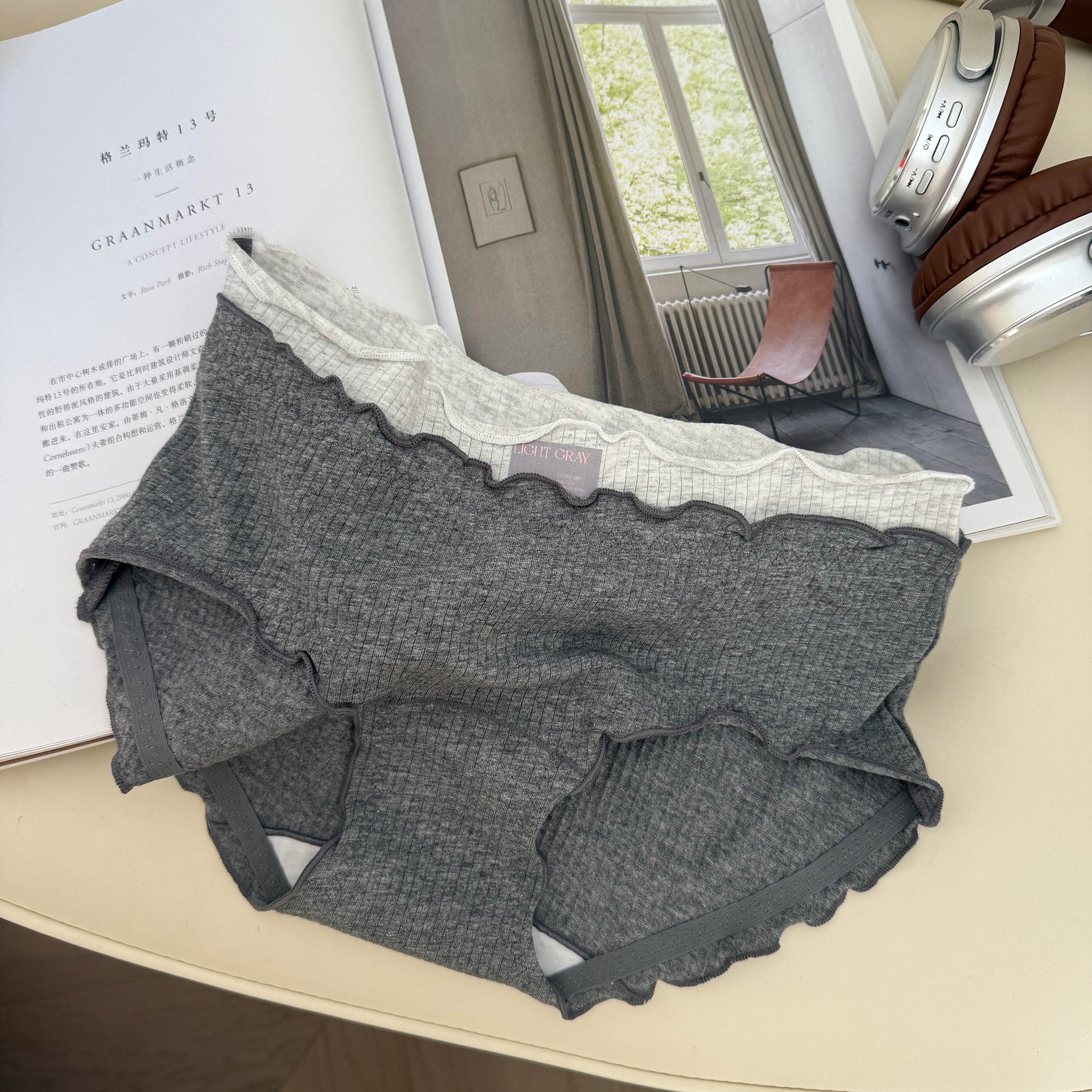 8996堆堆裤撞色拼接轻奢高级感ins螺纹坑条少女内裤纯棉透气中腰