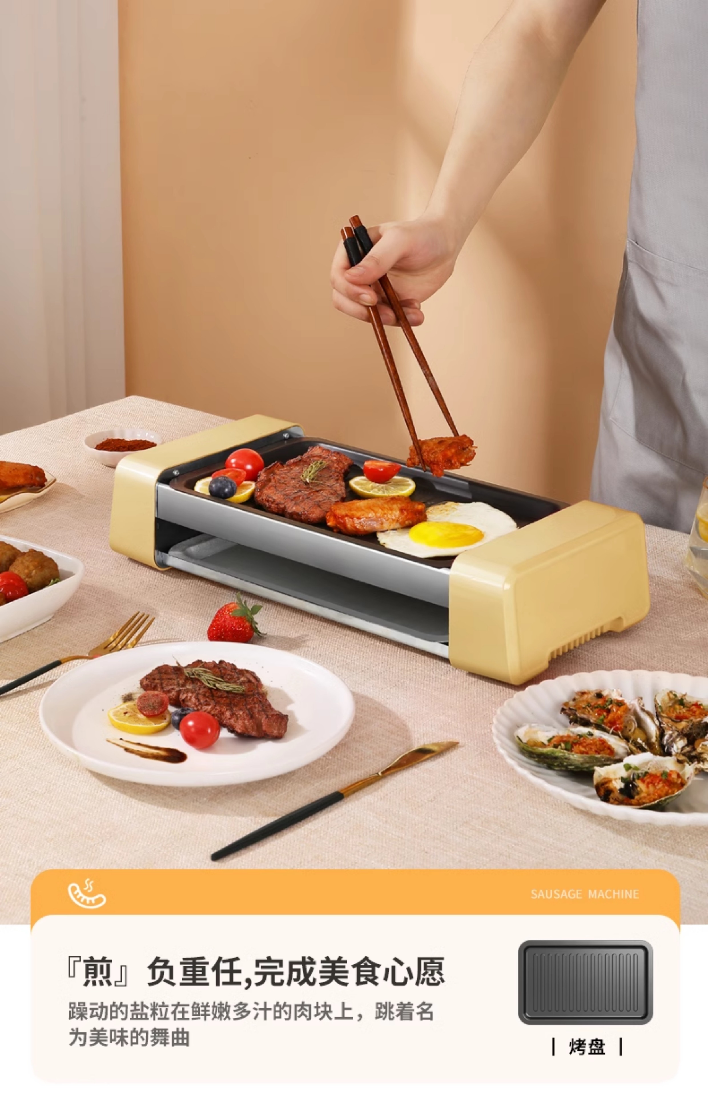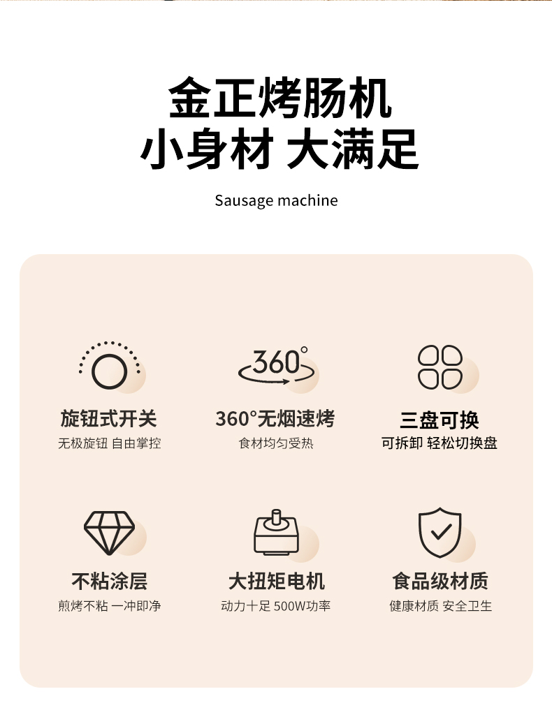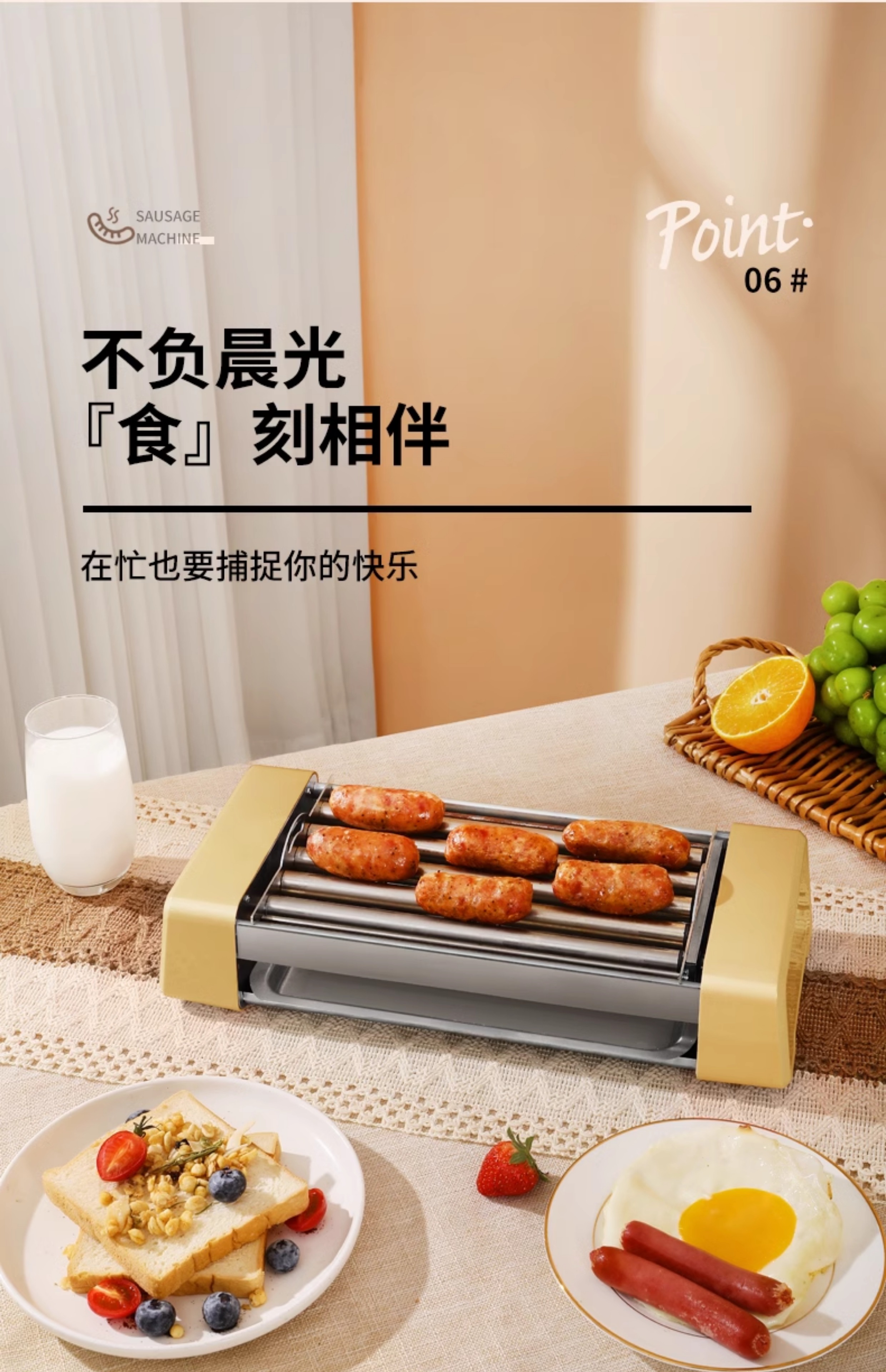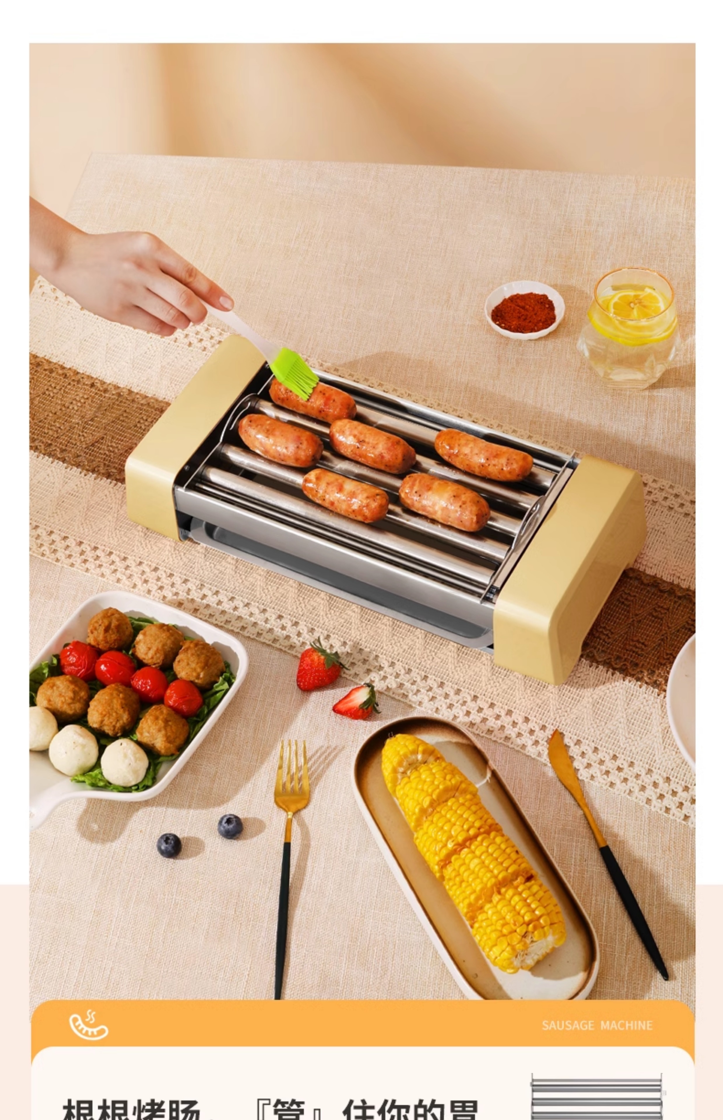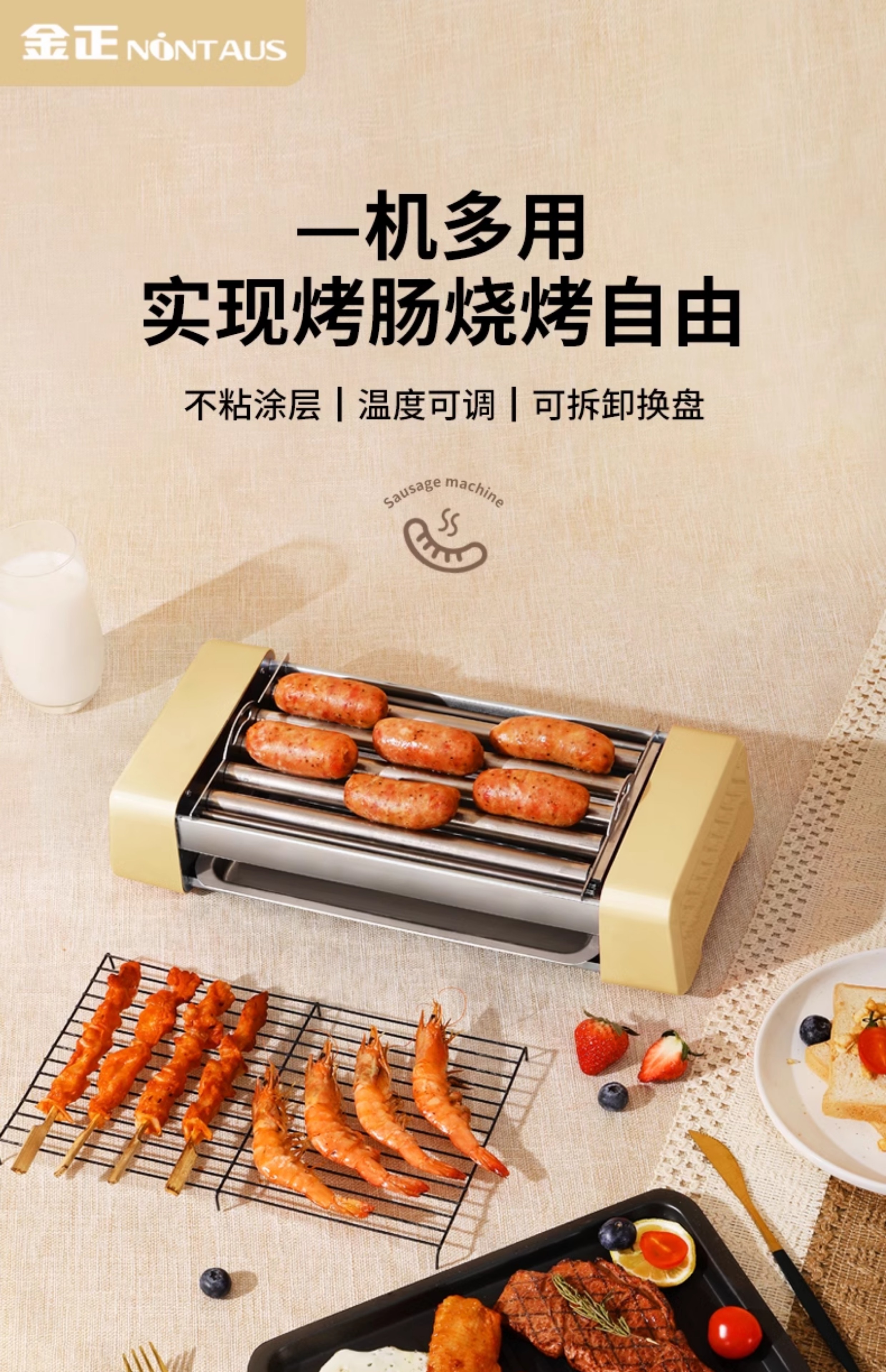 Jinzheng 소시지 굽기 기계 가정용 소형 기숙사 완전 자동 핫도그 기계 다기능 3-in-one 전기 바베큐 플레이트 소시지