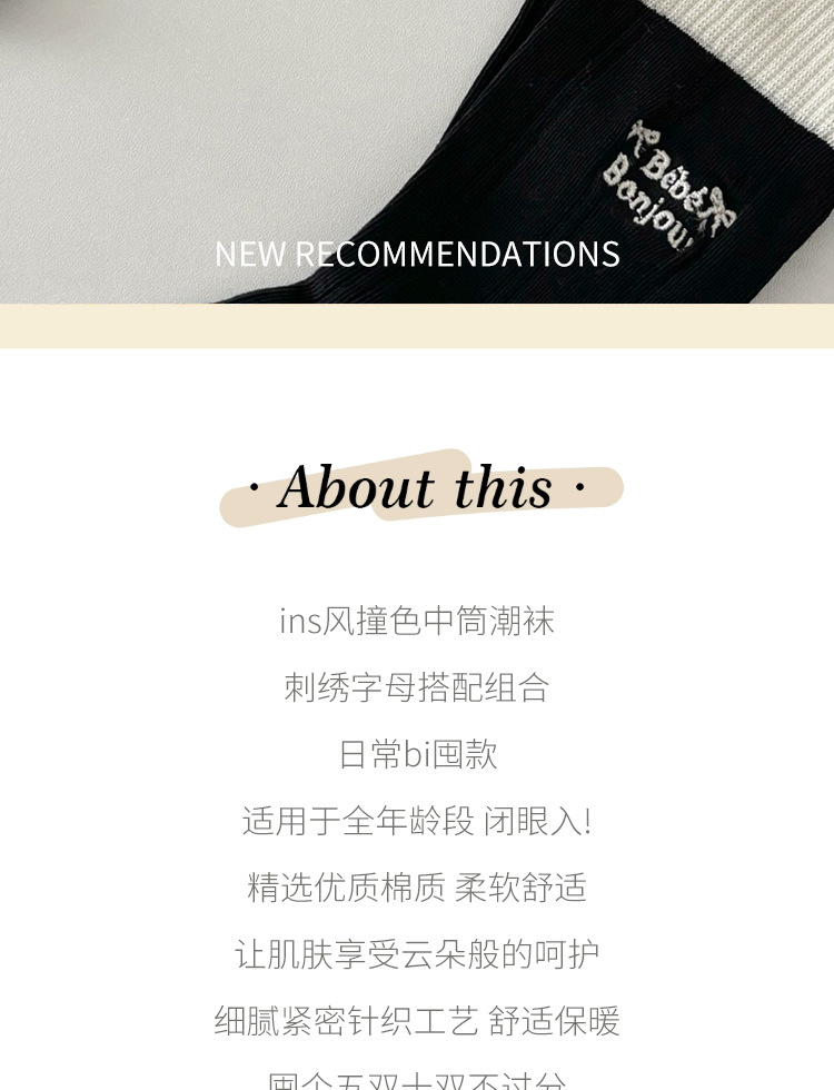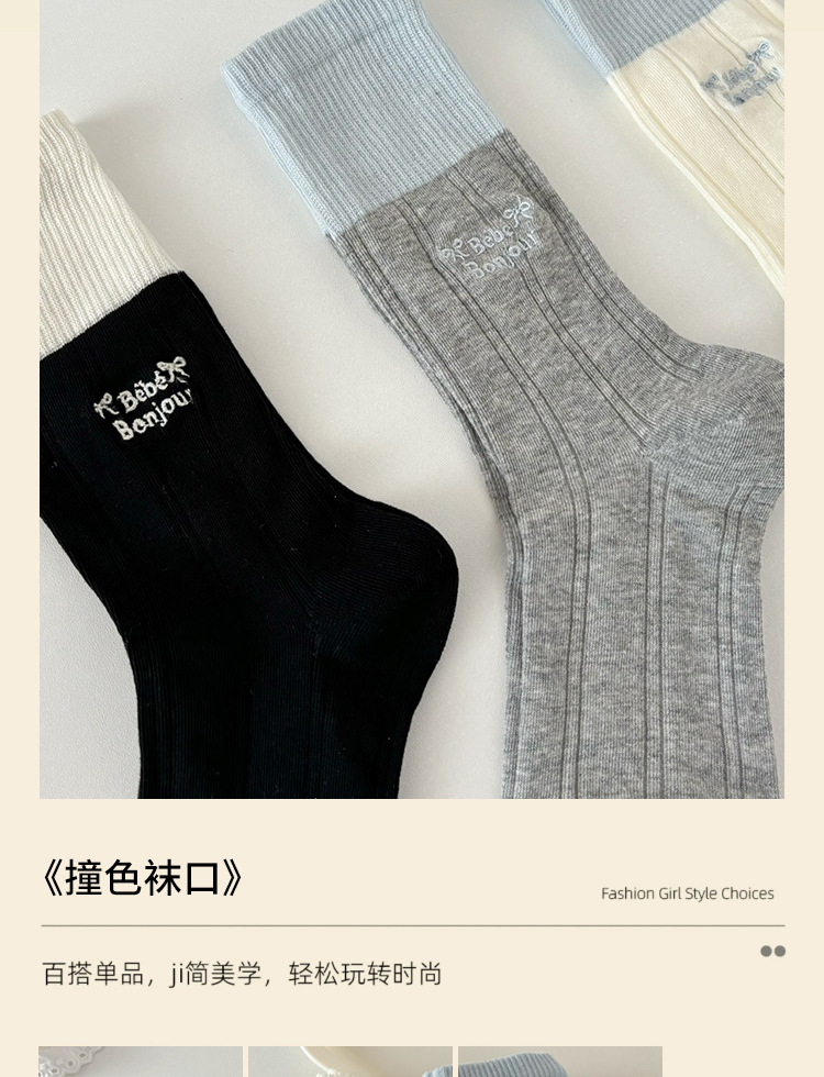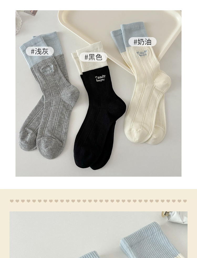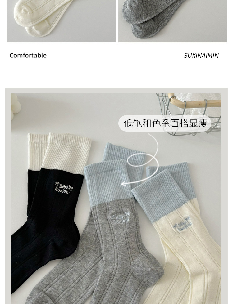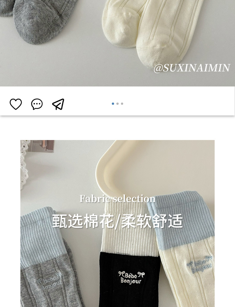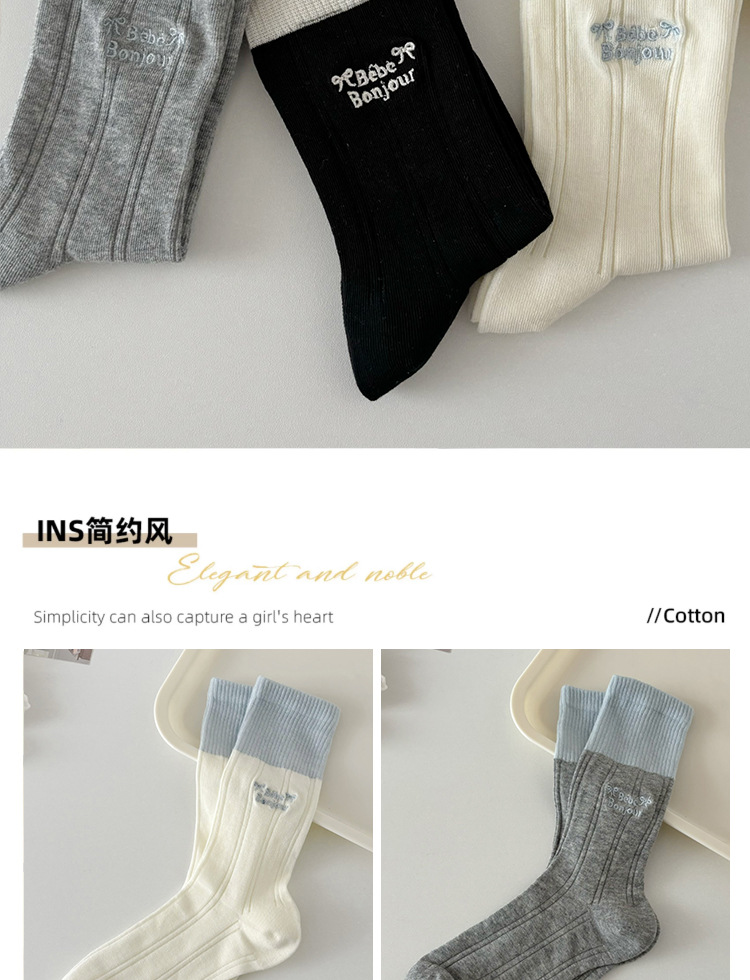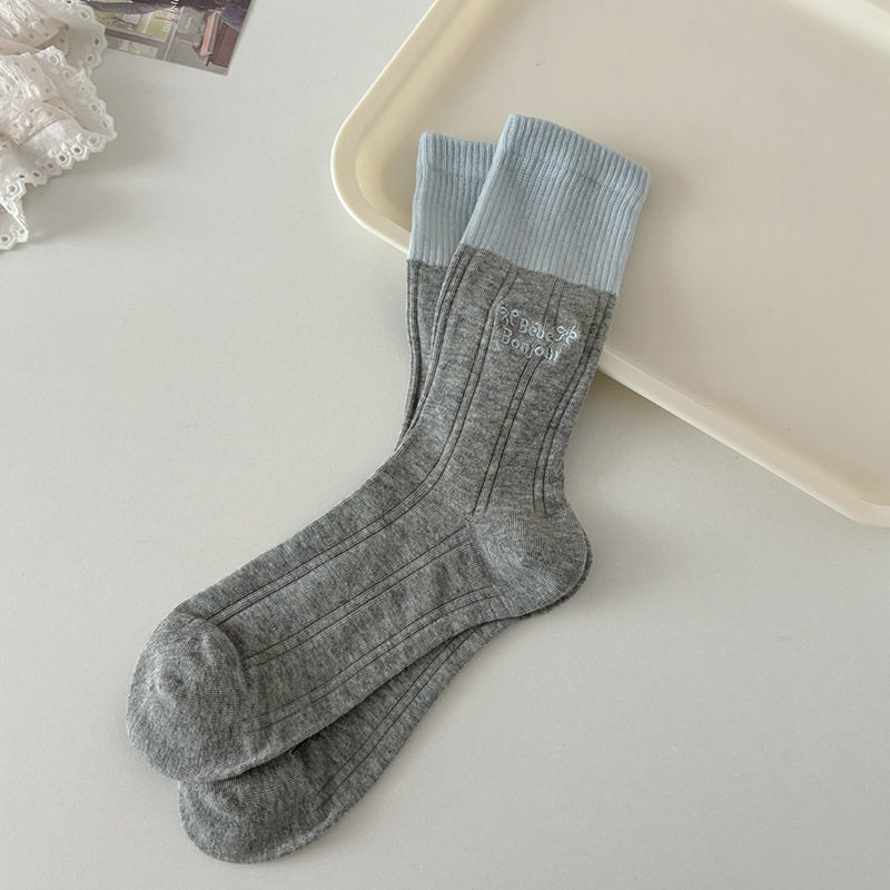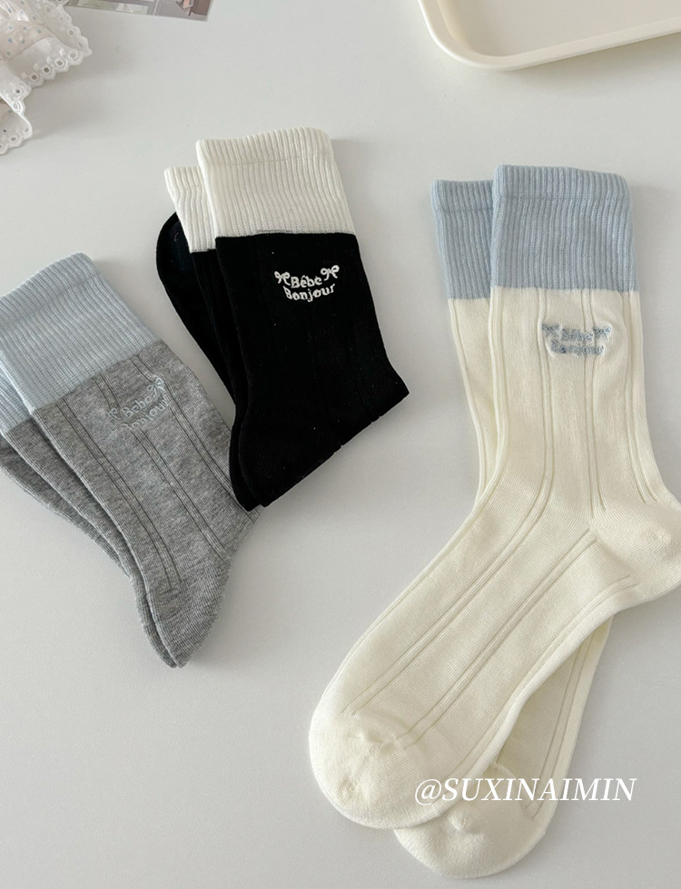 수시나이민 여성용 양말 가을 겨울 땀 흡수 인스 스타일 리본 자수 배색 양말 스포츠 중목 양말스토어 가기
