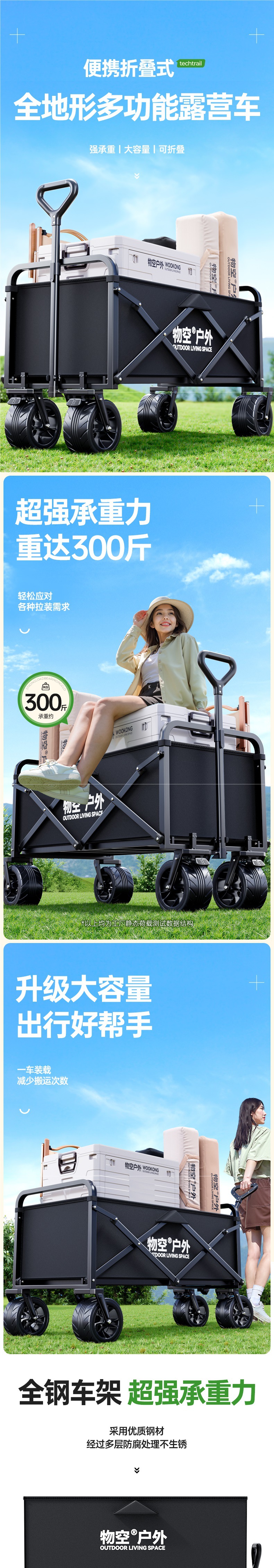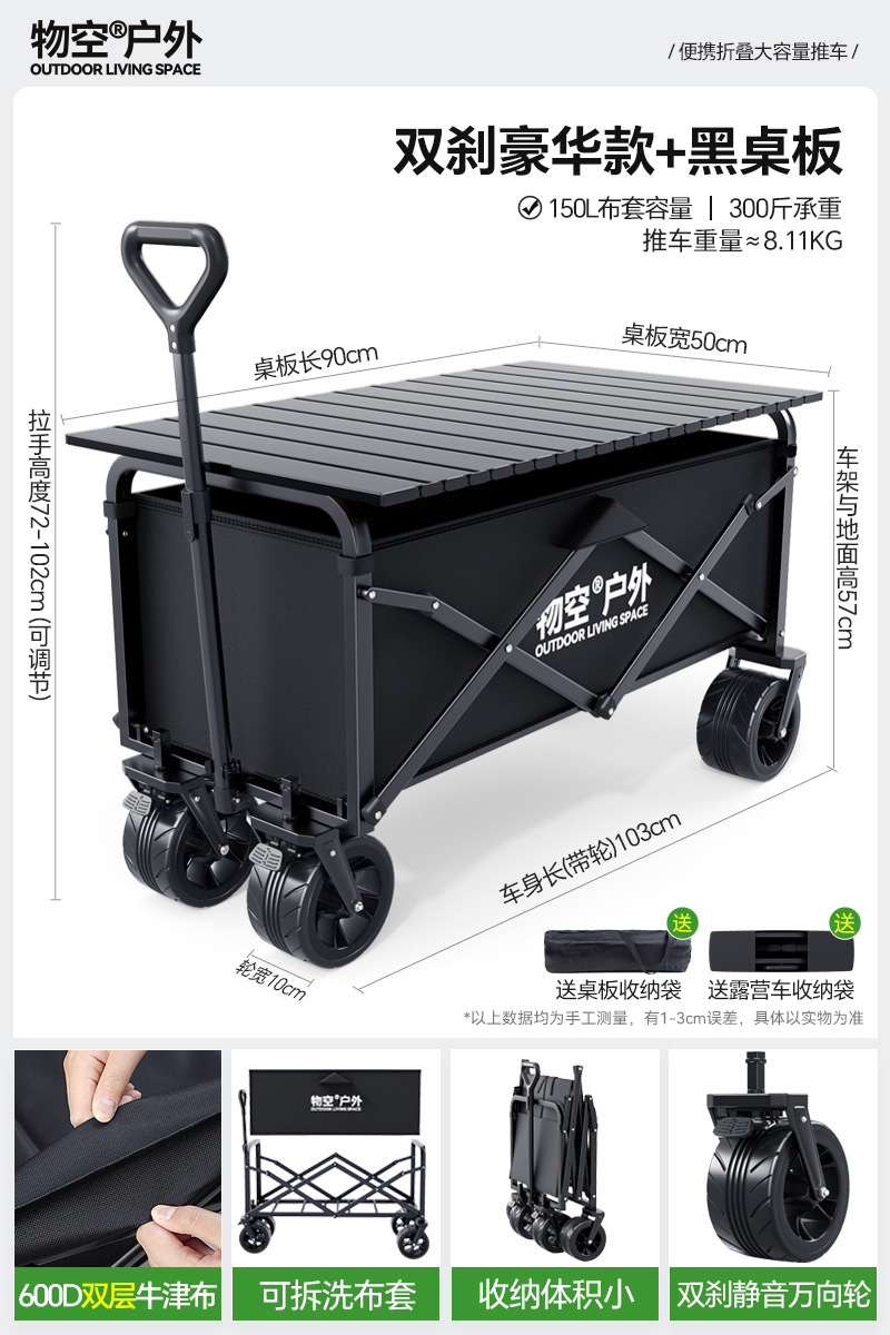 • 캠핑 세트 [특대형 사일런트 휠/흑요석 블랙] + 특대형 및 두꺼워진 올스틸 바디 + 유니버설 휠 + 접이식 카키 테이블