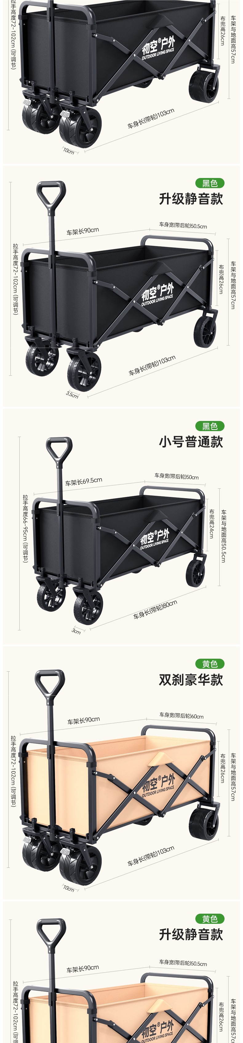 • 캠핑 세트 [일반 사일런트 휠/고운 샌드 옐로우] + 두꺼워진 올스틸 바디 + 사일런트 유니버설 휠 + 접이식 흑요석 블랙 테이블