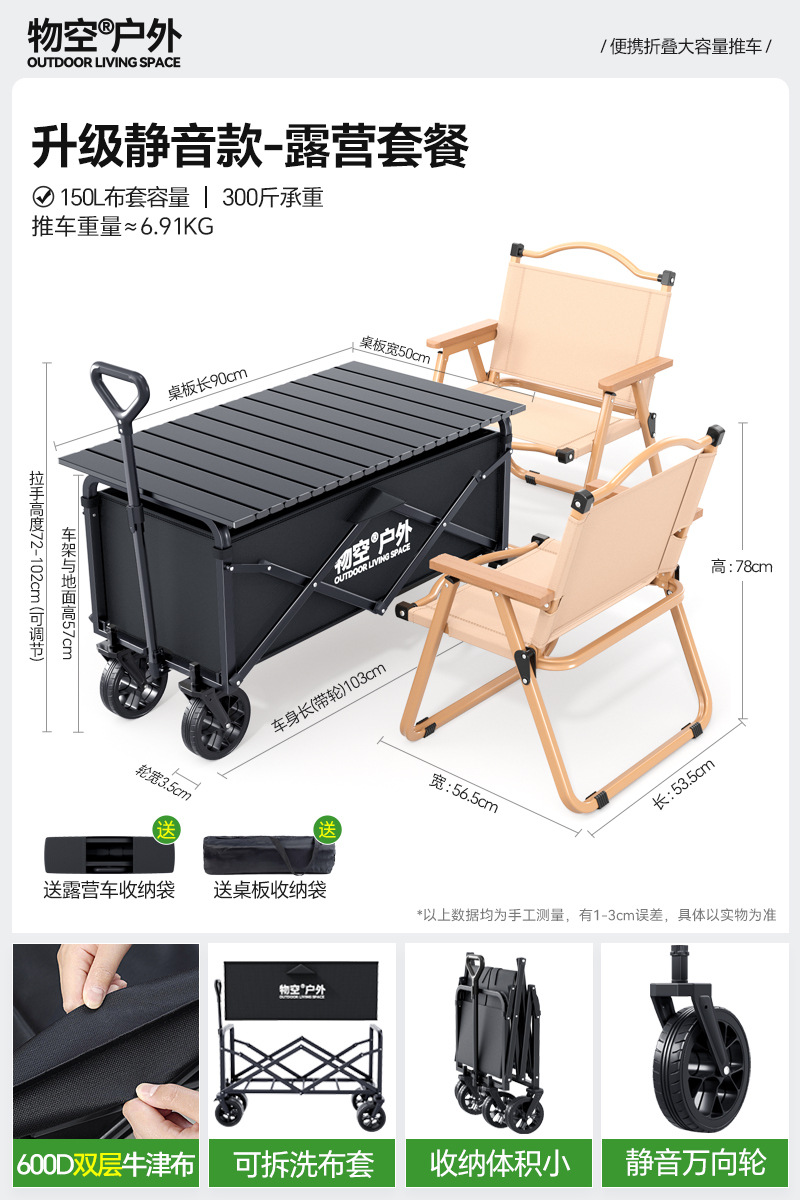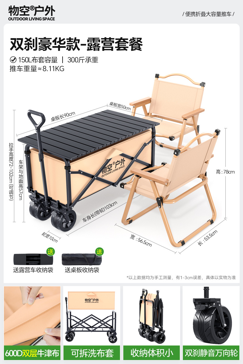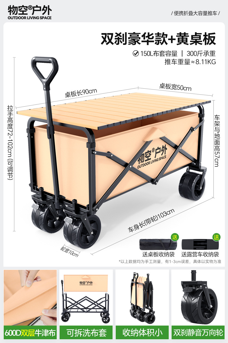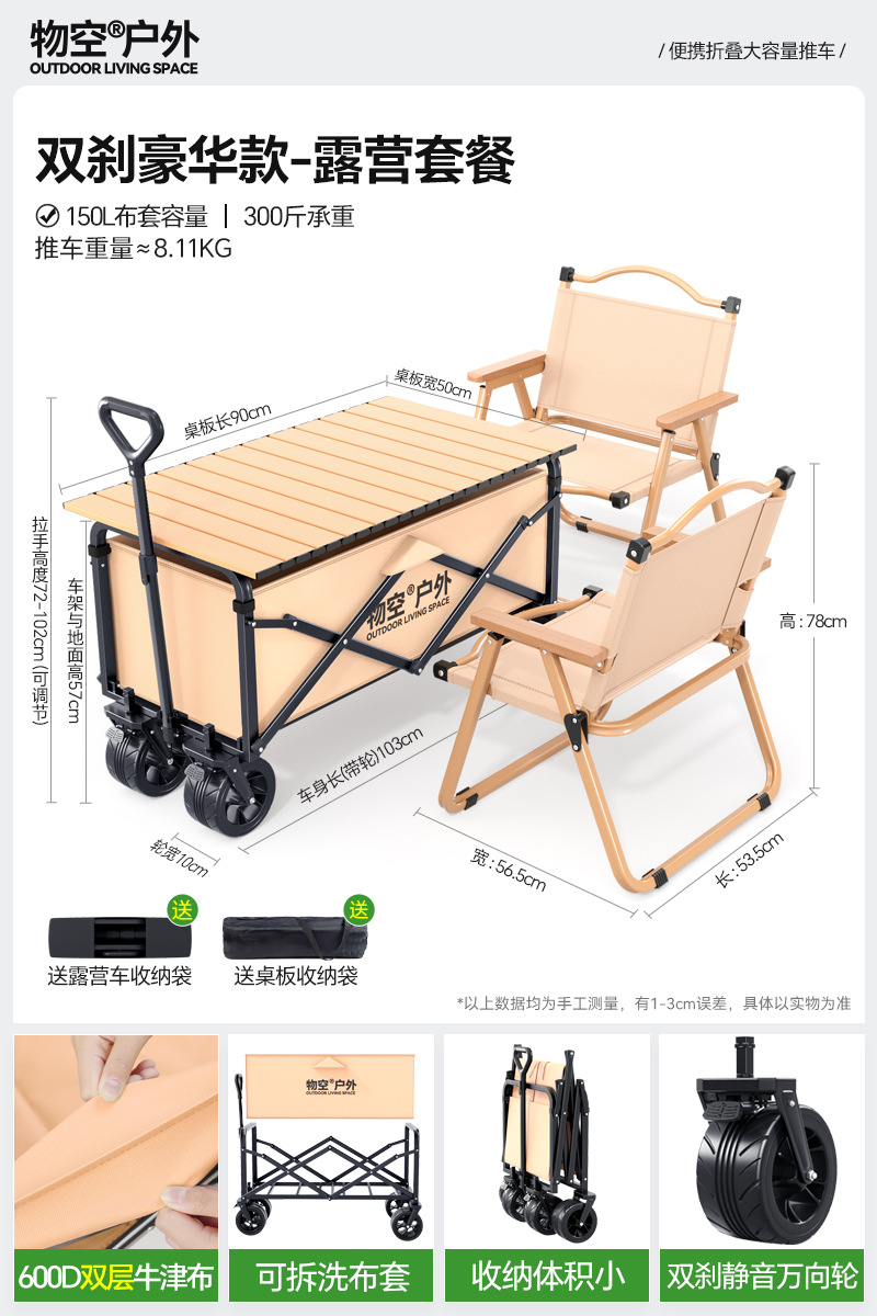 • 캠핑 세트 [특대형 사일런트 휠/고운 모래 노란색] + 특대형 및 두꺼운 올스틸 바디 + 유니버설 휠 + 접이식 흑요석 블랙 테이블