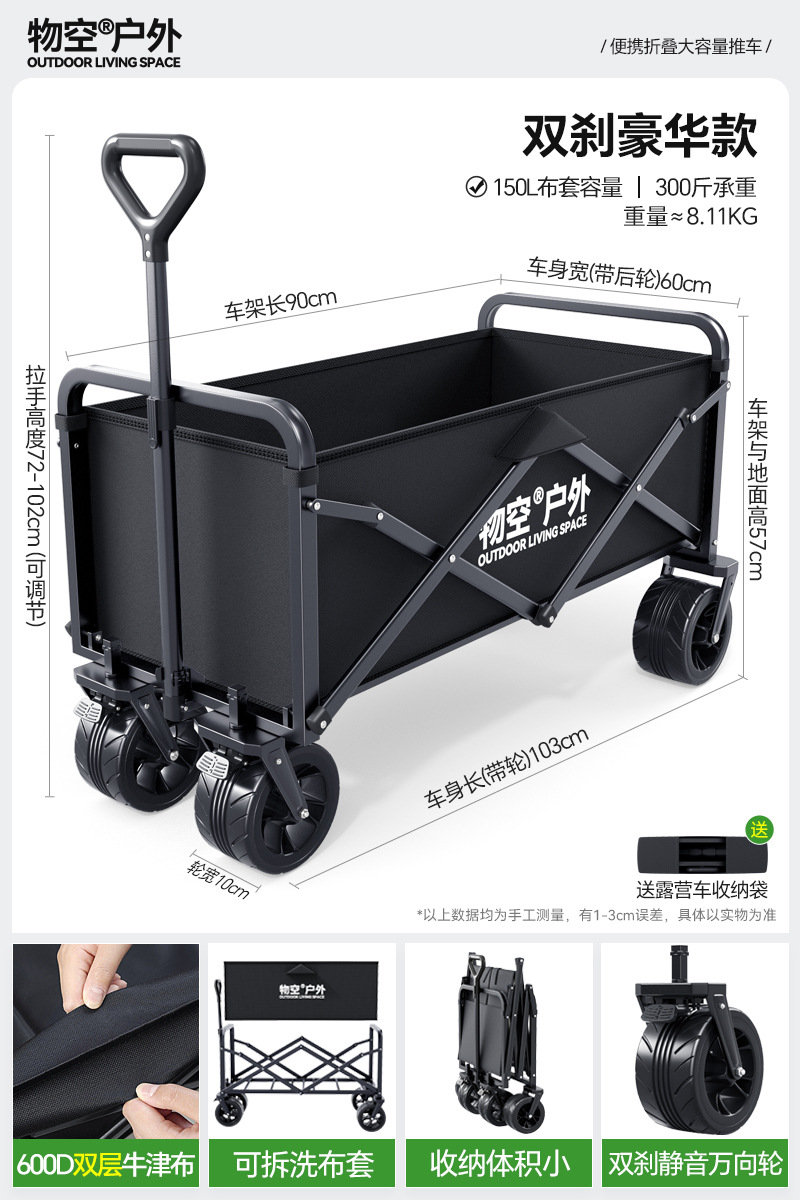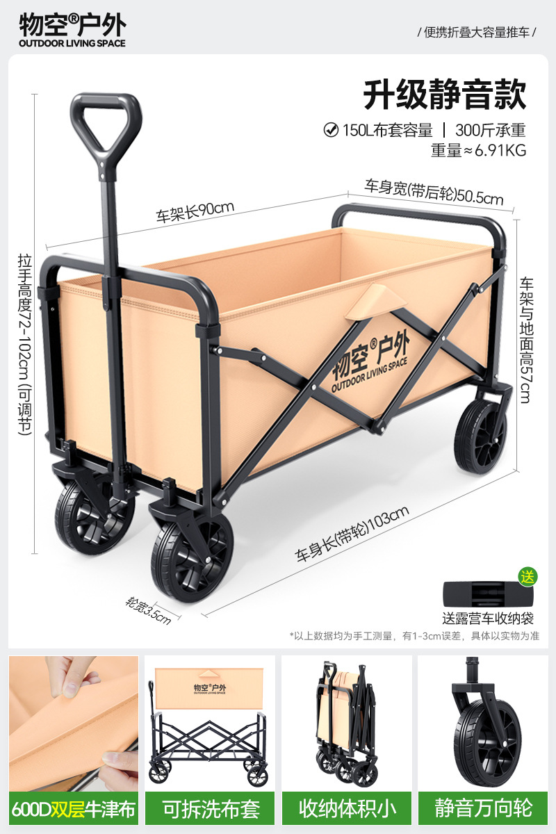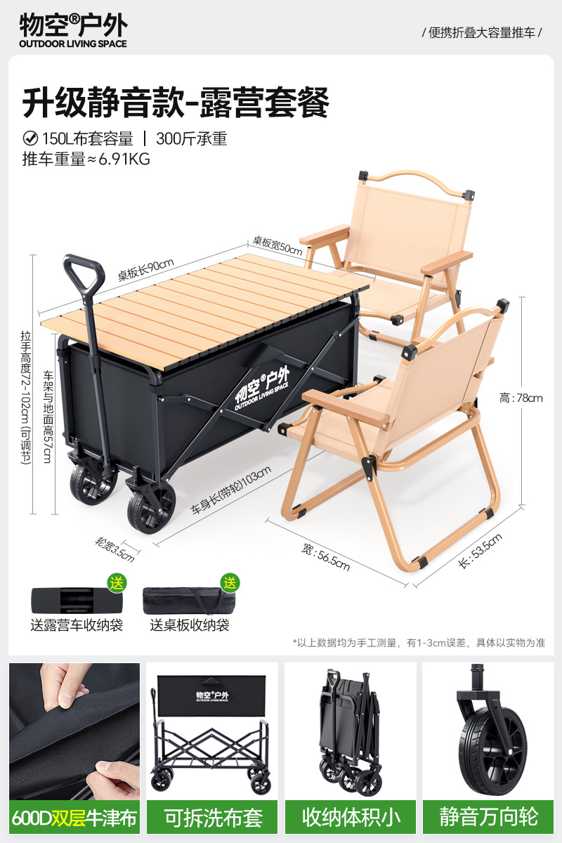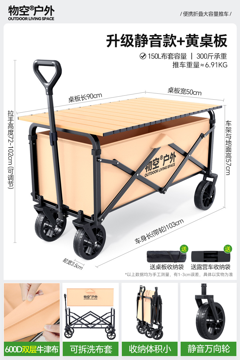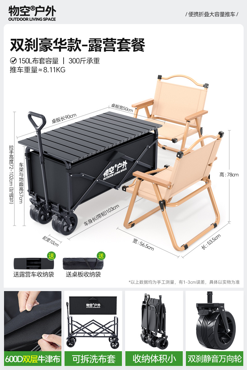 • 캠핑 세트 [특대형 사일런트 휠/고운 모래 노란색] + 특대형 및 두꺼운 올스틸 바디 + 유니버설 휠 + 접이식 흑요석 블랙 테이블
