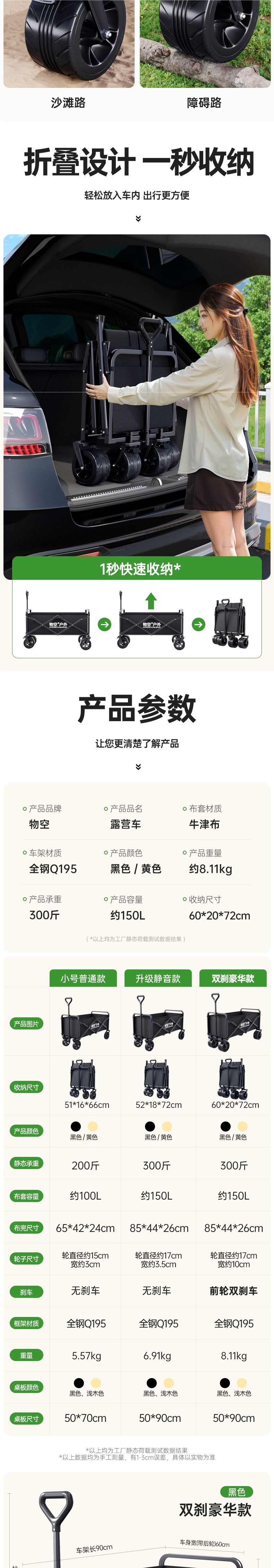 • 플래그십 모델 - 캠핑 세트 [비행기 바퀴/고운 모래 노란색] 올 스틸 바디 + 더블 브레이크 유니버설 휠 + 접이식 흑요석 블랙 테이블
