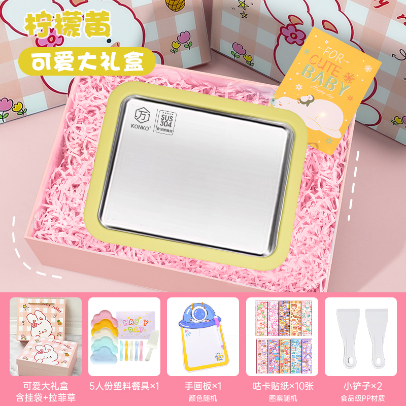 • [레몬옐로우*라지 사이즈] 귀여운 토끼 식품등급 304 스테인레스 스틸 + 선물가방 + 스티커
