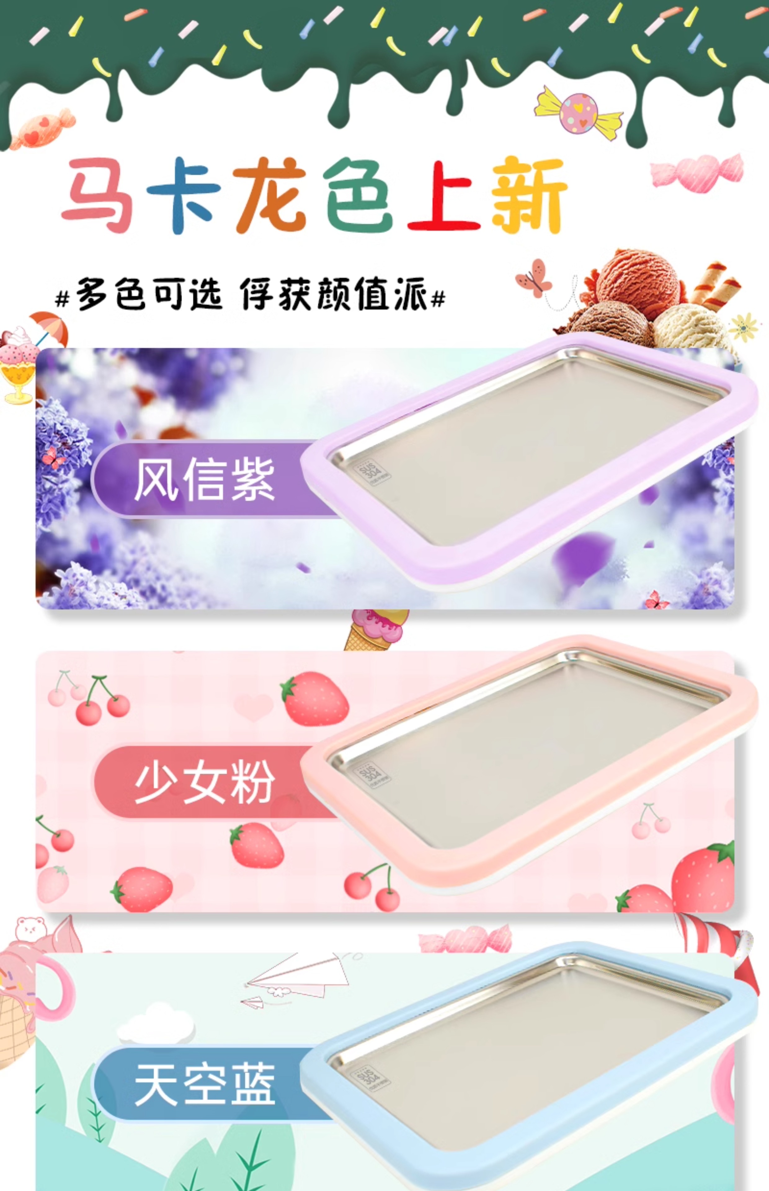 • [히아신스 퍼플-핑크 귀여운 선물 상자] 식품 등급 304 스테인레스 스틸 + 무료 얼음 튀김 삽 + 선물