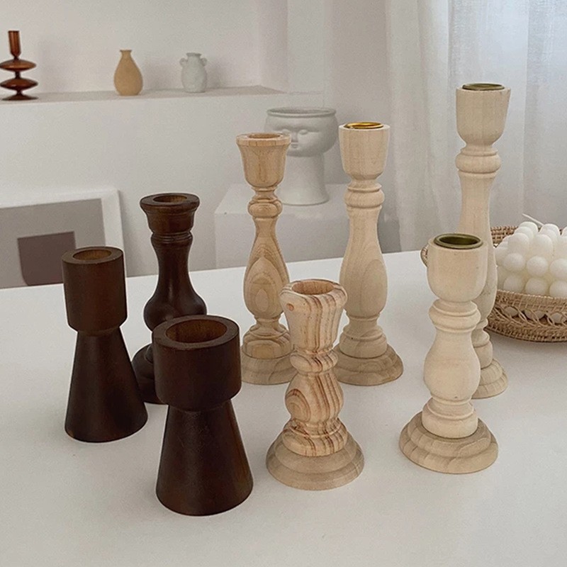맞춤형 나무 촛대, 단단한 나무 숲 웨딩 장식, 캠핑 테이블 촛대 장식, 모델 룸 장식스토어 가기
