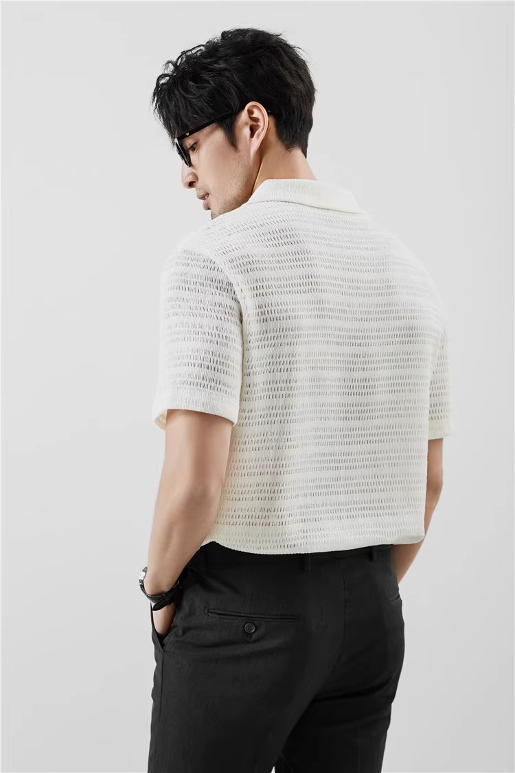 폴로 셔츠 v 넥 반팔 스웨터 남성용 중공 갈매기 칼라 영국 비즈니스 여름 얼음 실크 대외 무역 국경 간 도매스토어 가기