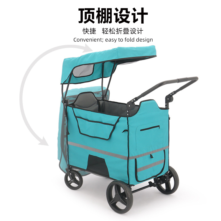 야외 캠핑 다기능 유모차 모기 방지 커버 접이식 더블 캐노피 태양 보호 소형 트레일러