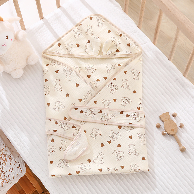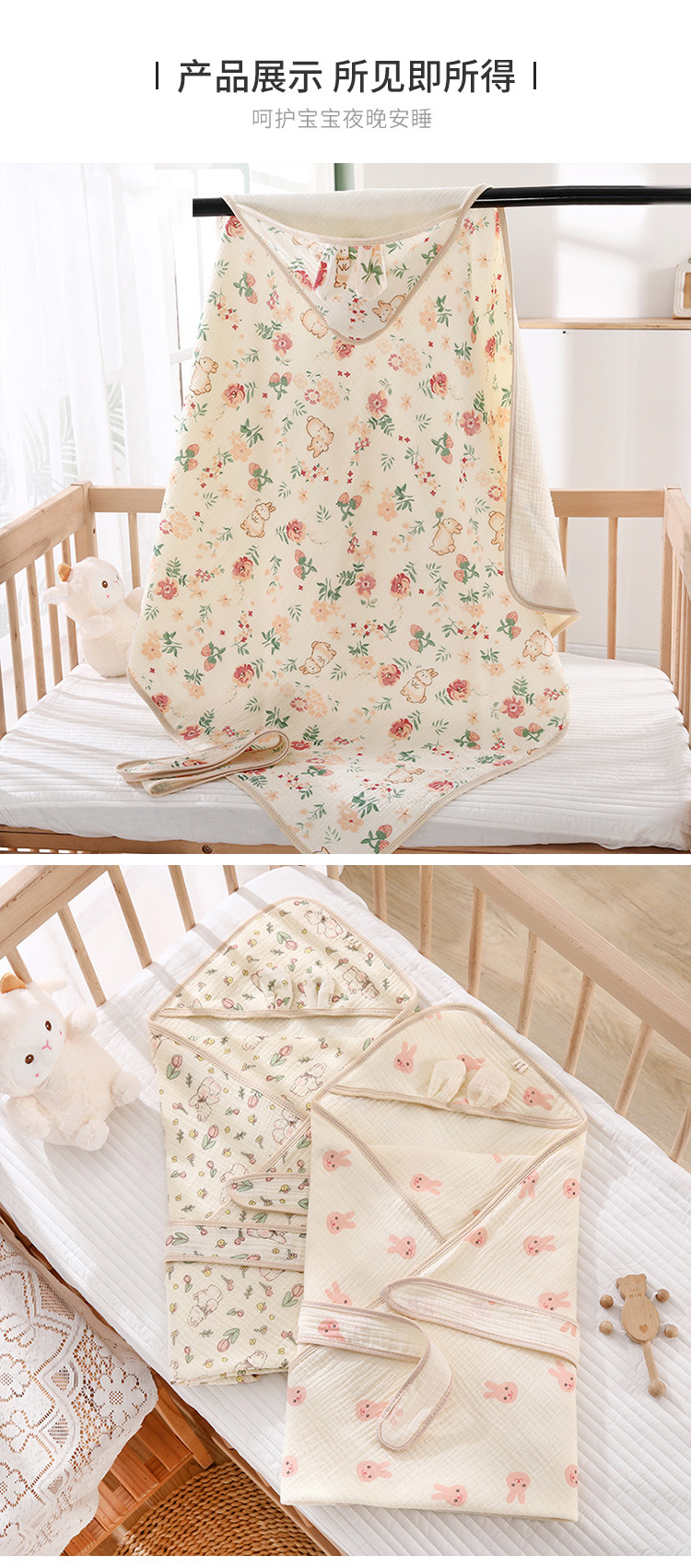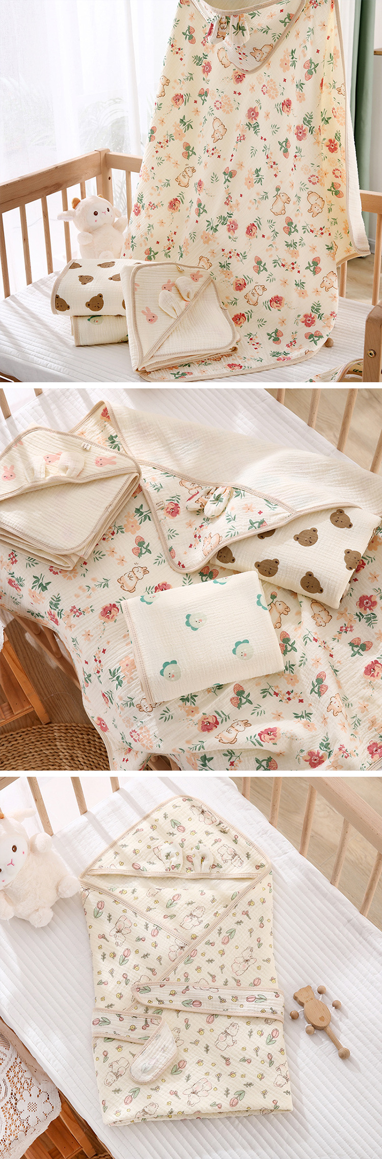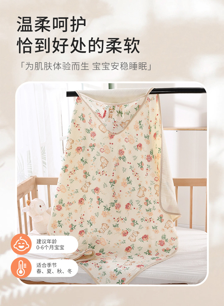 신생아 이불 A급 순면 4겹 크레이프 얇은 이불, 발차기 방지 이불, 점프 방지 이불, 싱글 낮잠 담요스토어 가기