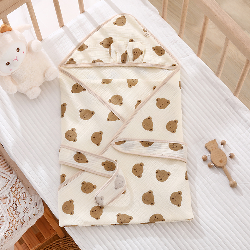 신생아 이불 A급 순면 4겹 크레이프 얇은 이불, 발차기 방지 이불, 점프 방지 이불, 싱글 낮잠 담요