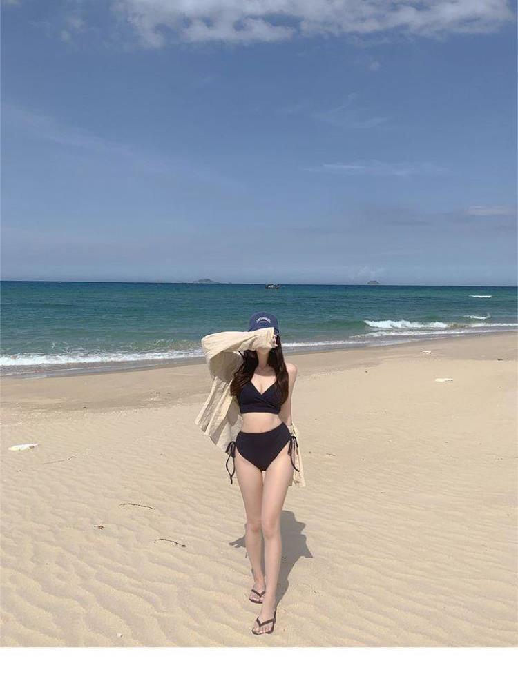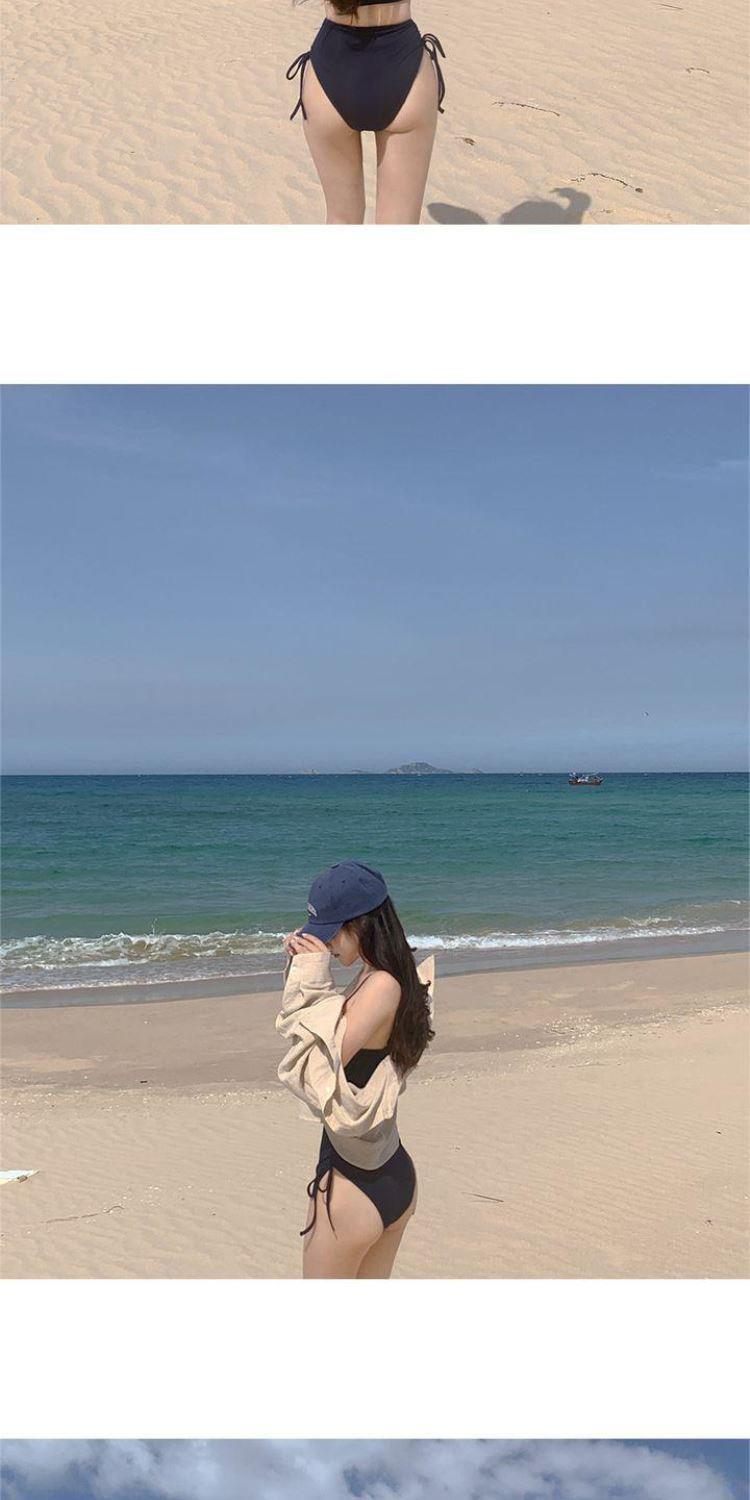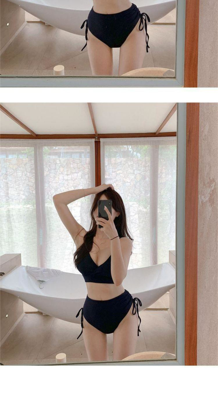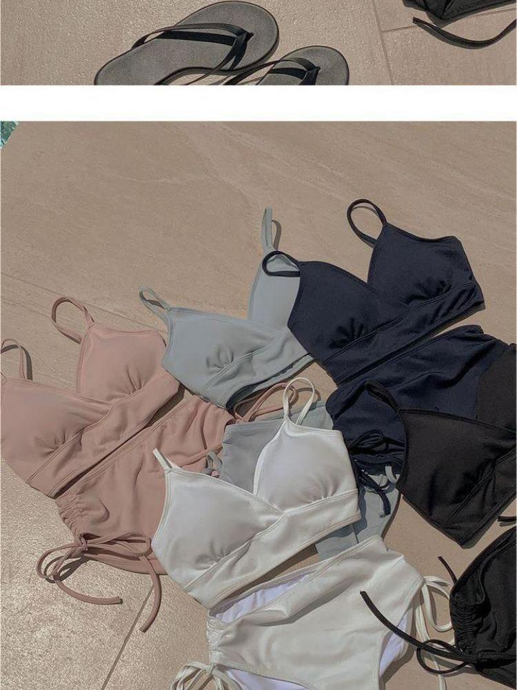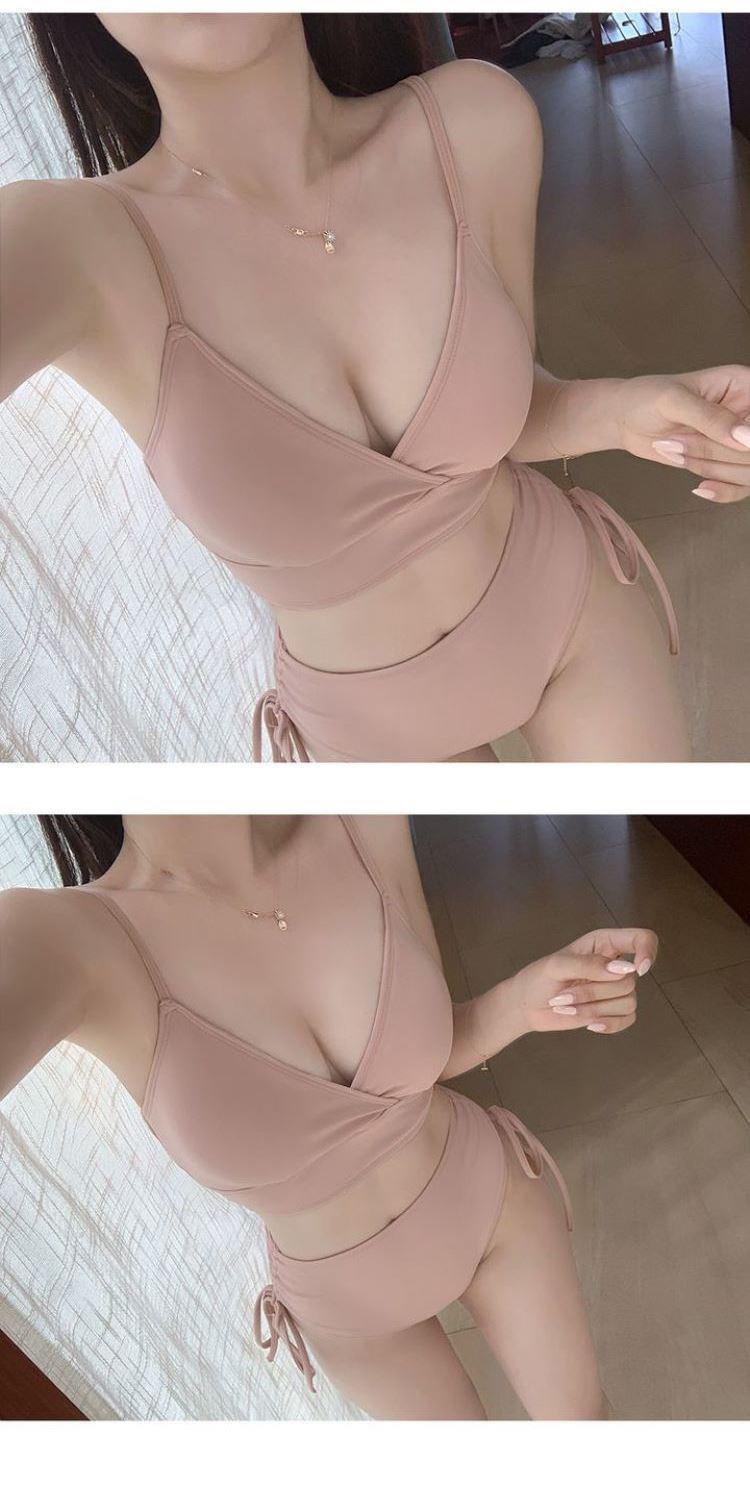 Q6J 한국 신작 여성 네트 딥 V 하이 웨이스트 드로스트링 비키니 작은 가슴 스포츠 솔리드 컬러 심플스토어 가기