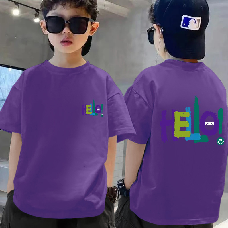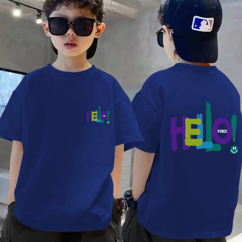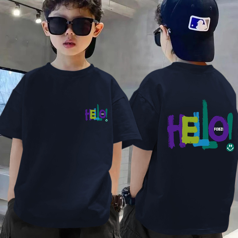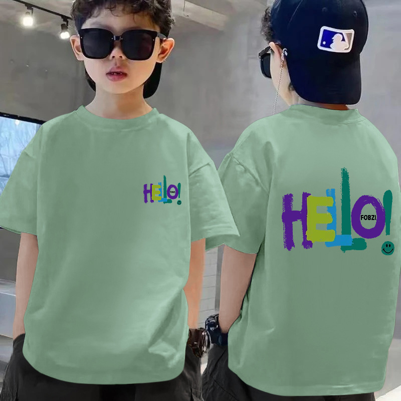 100 코튼 보이즈 반팔 티셔츠 여름 새 스타일 빅 키즈 캐주얼 심플 웨스턴 스타일 반소매 보이즈 탑 여름