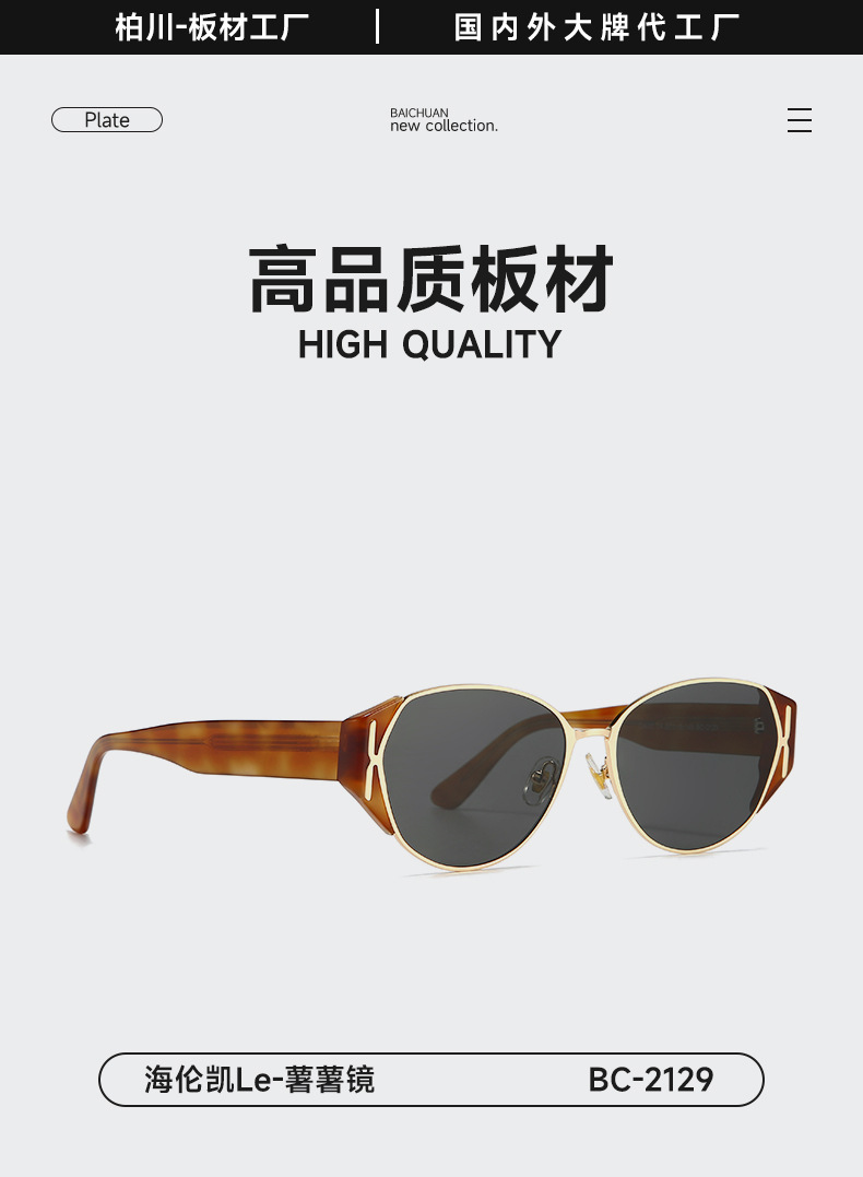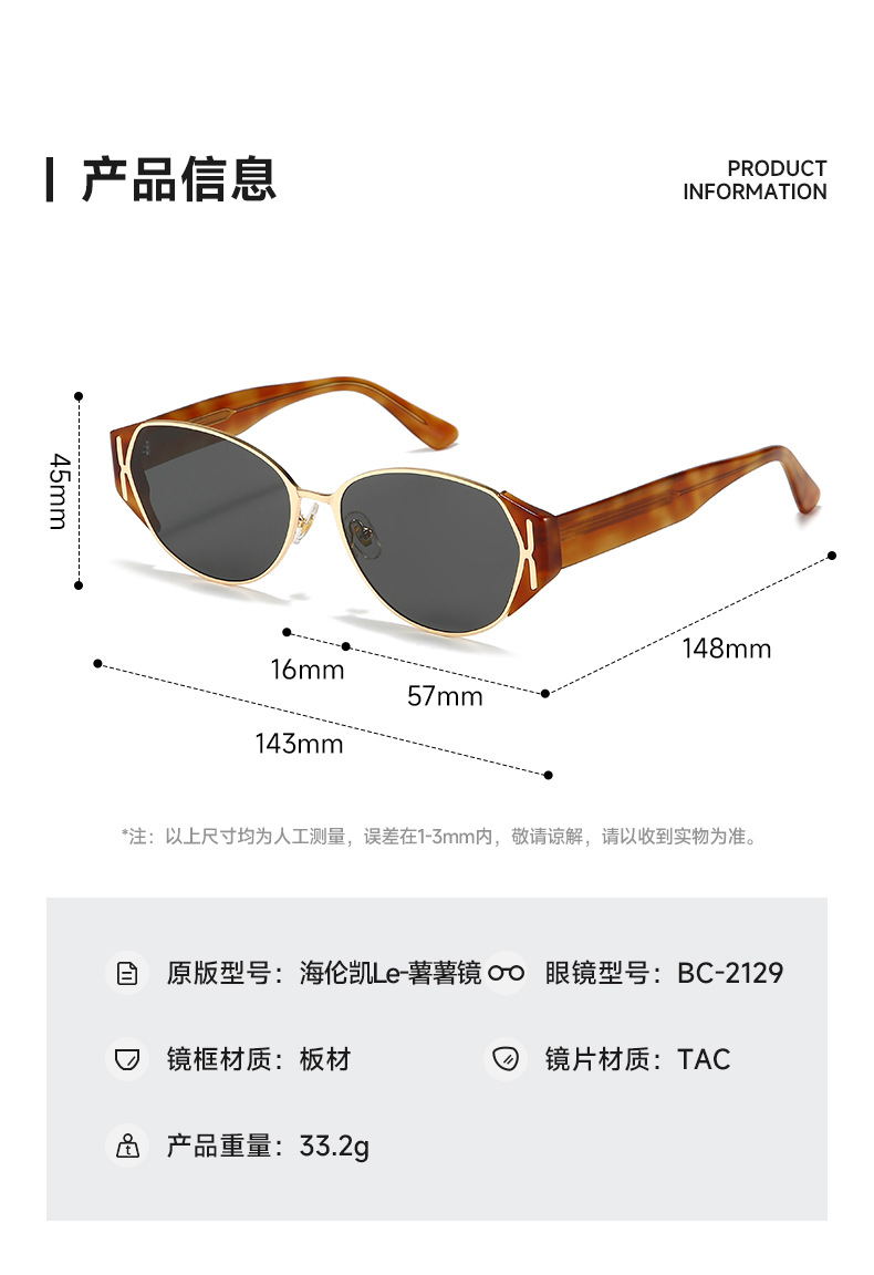 플레이트 선글라스 감자 거울 2025 새로운 고양이 눈 여성 hawksbill 컬러 얼굴 작은 UV 보호 선글라스 BC2129스토어 가기