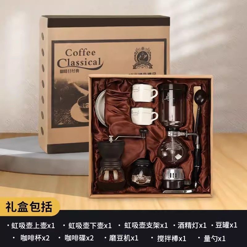 사이펀 커피 냄비 세트 선물 상자 빈티지 핸드 그라인딩 커피 머신 가정용 유리 끓는 냄비 소스 커피 용품