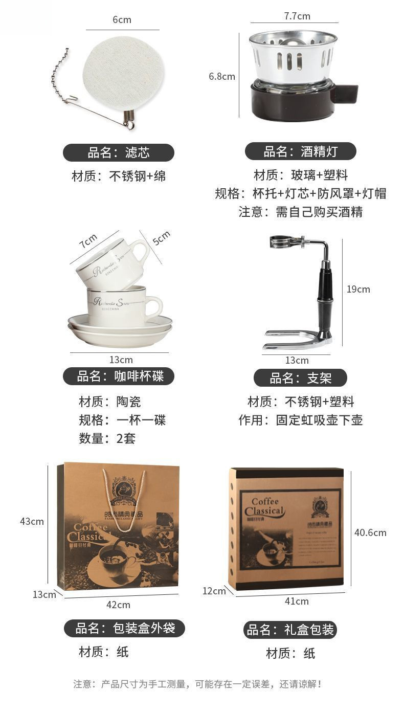 사이펀 커피 냄비 세트 선물 상자 빈티지 핸드 그라인딩 커피 머신 가정용 유리 끓는 냄비 소스 커피 용품스토어 가기