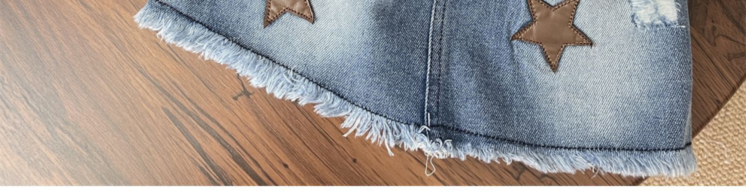 • 커피 오각별 데님 화이트 홀 스커트