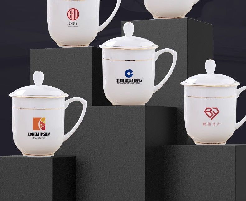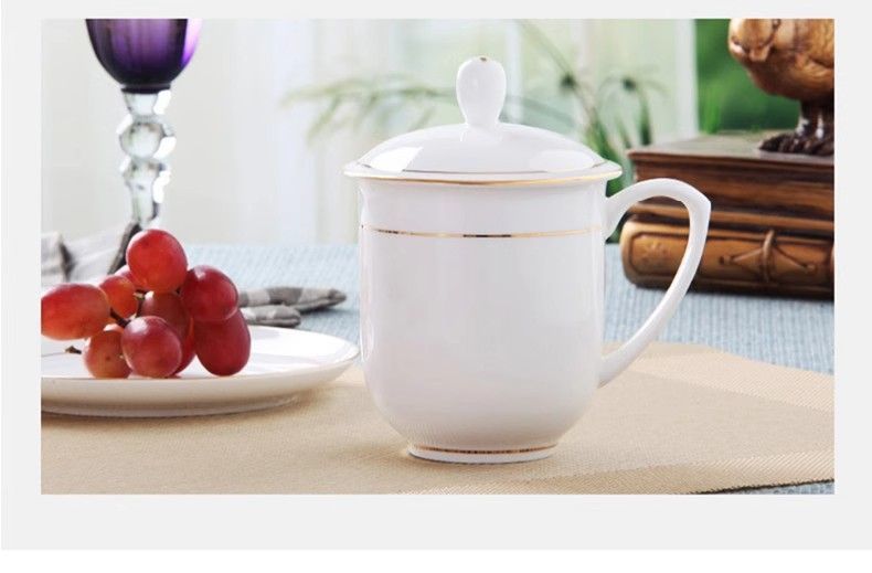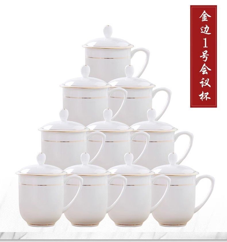 Jingdezhen 세라믹 티 컵 10 세트 오피스 리셉션 워터 컵 뚜껑 뼈 중국 회의 컵