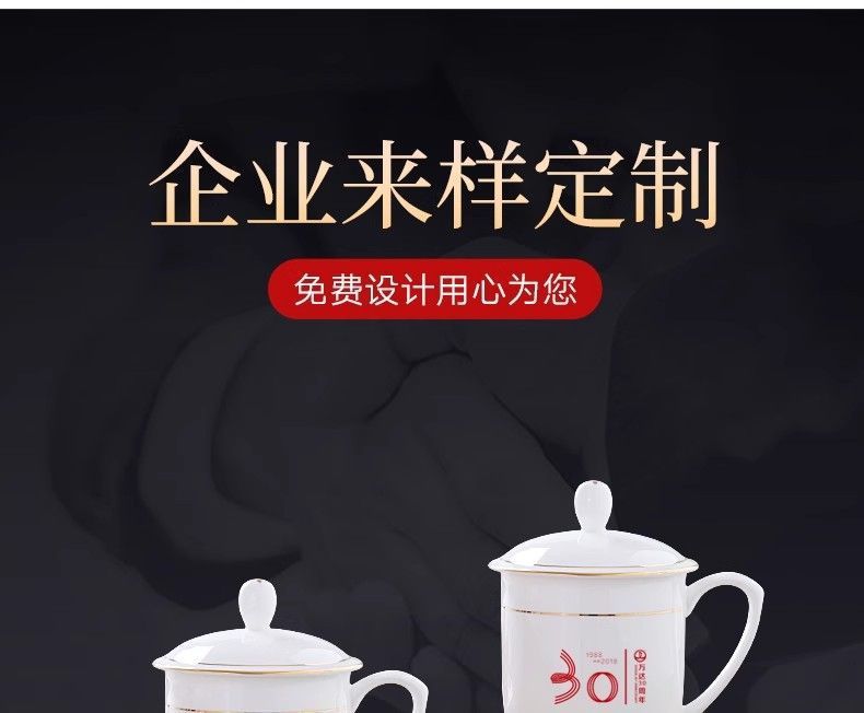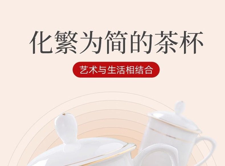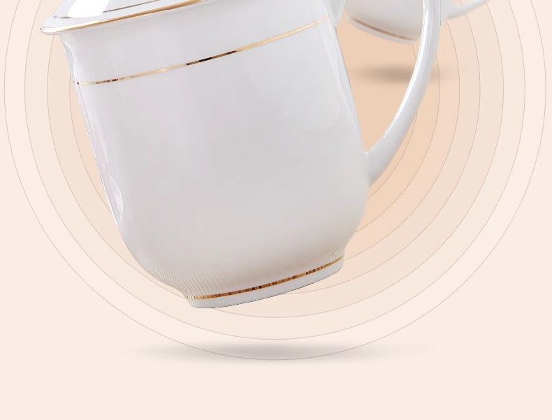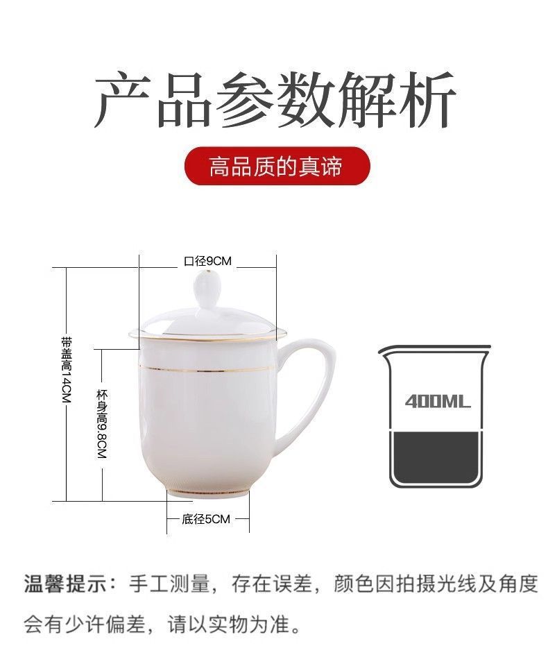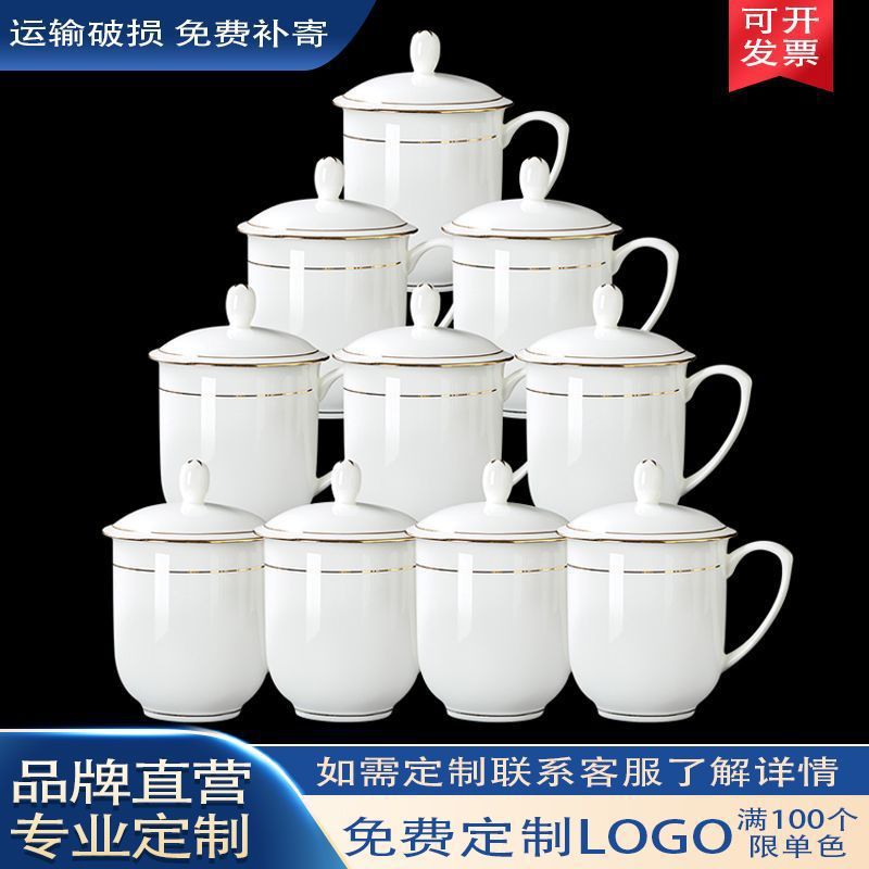 Jingdezhen 세라믹 티 컵 10 세트 오피스 리셉션 워터 컵 뚜껑 뼈 중국 회의 컵스토어 가기